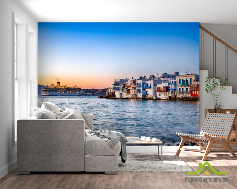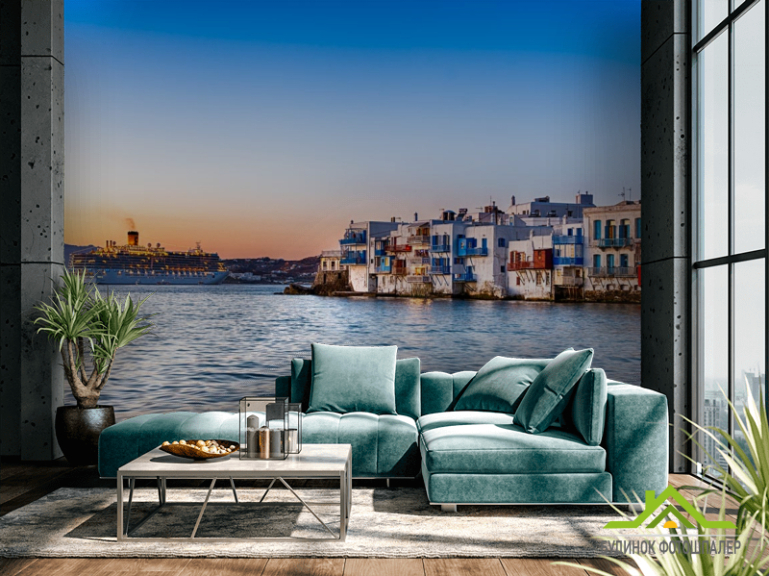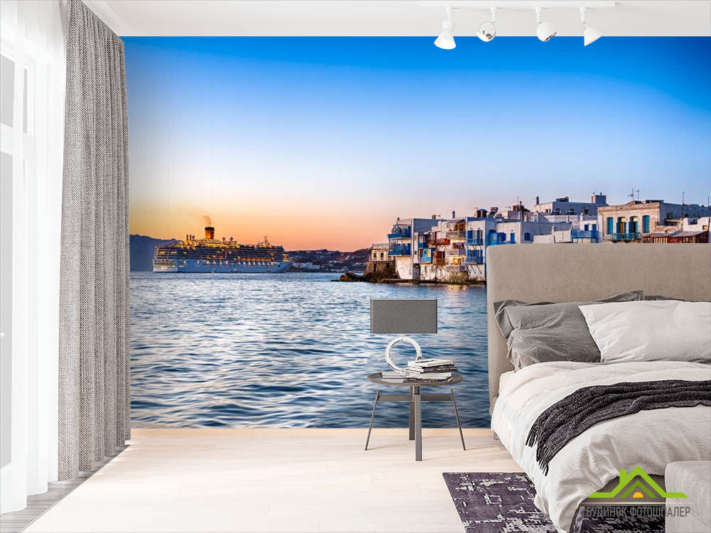Фотообои пароход на берегу вечернего моря Фотообои пароход на берегу вечернего моря