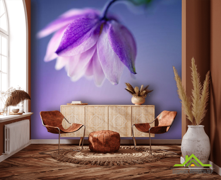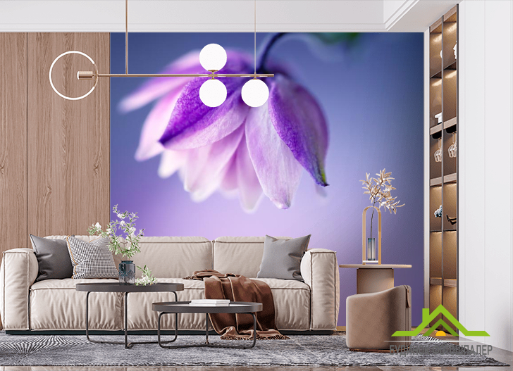 Фотообои сиреневый цветочек на сиреневом фоне
