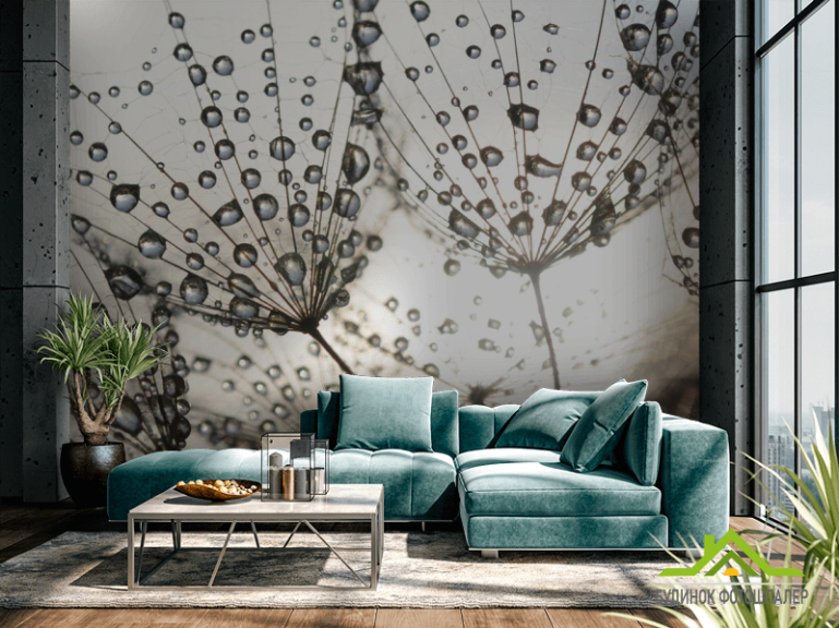 Фотообои капли и одуванчик Фотообои капли и одуванчик