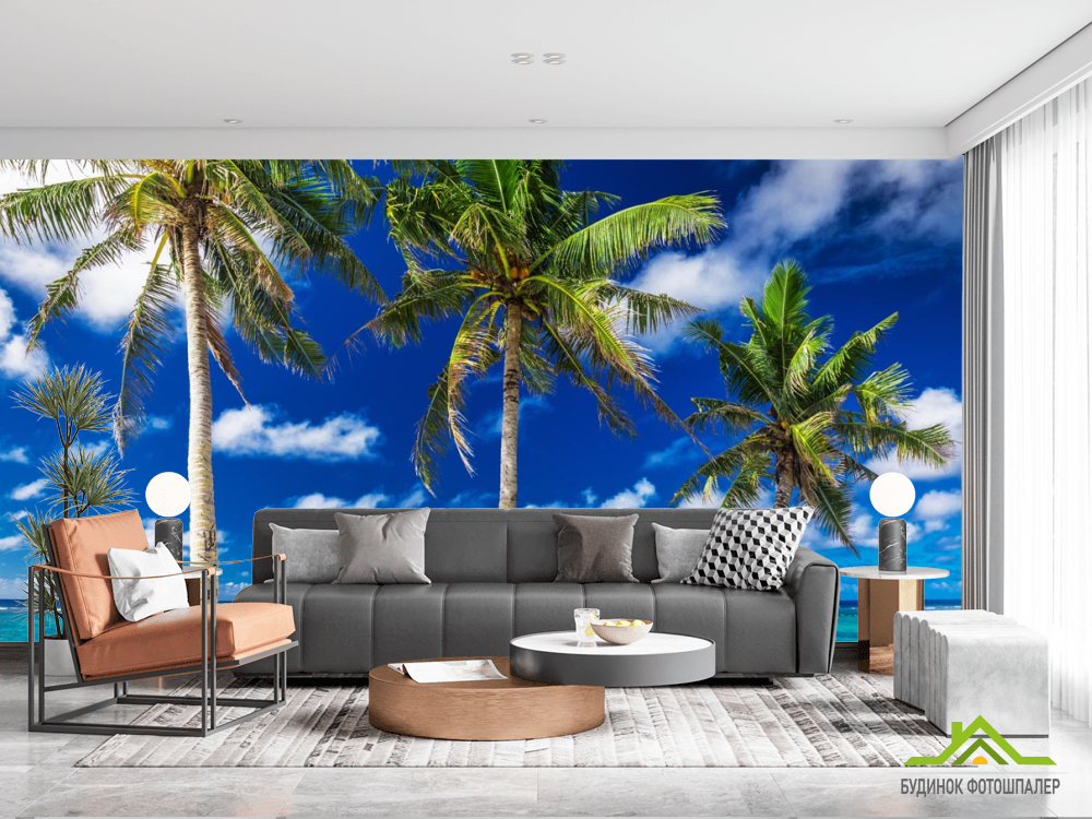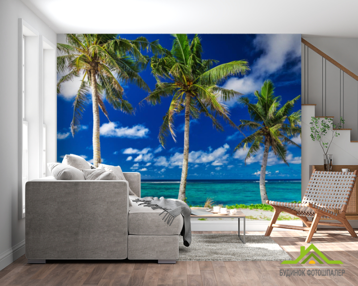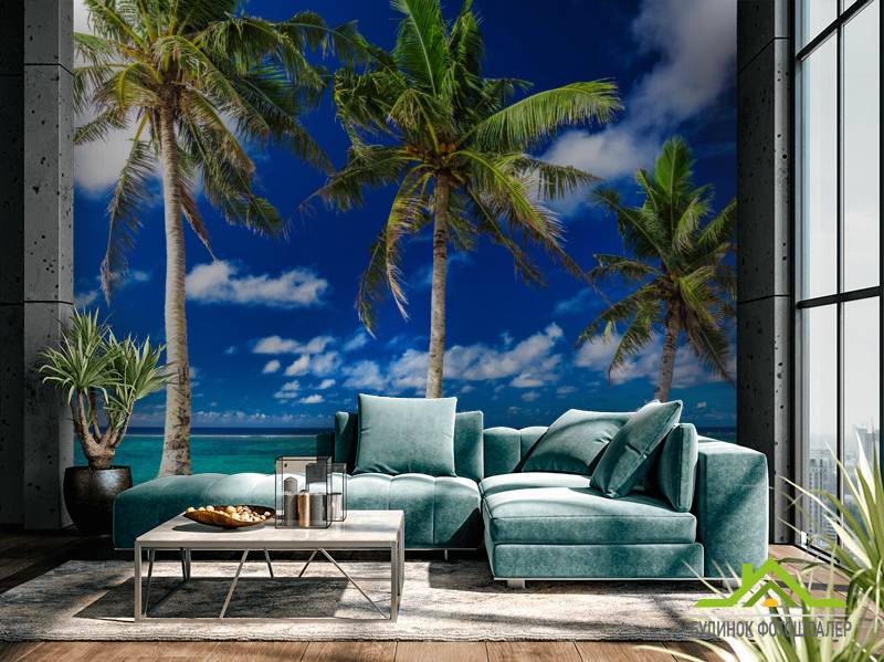 Фотообои Три пальмы у моря Фотообои Три пальмы у моря