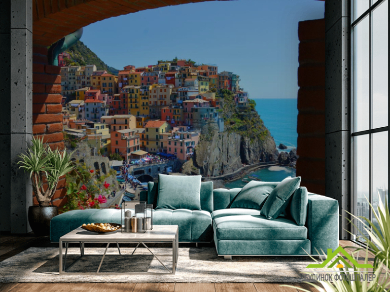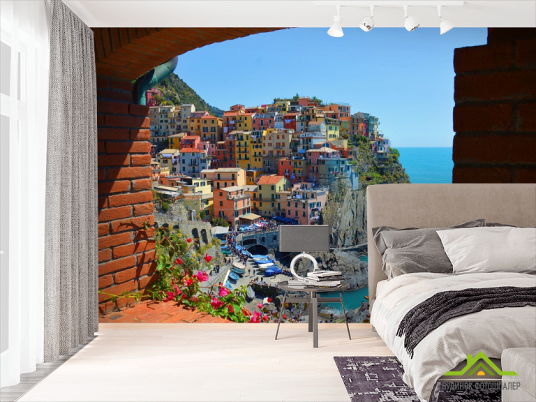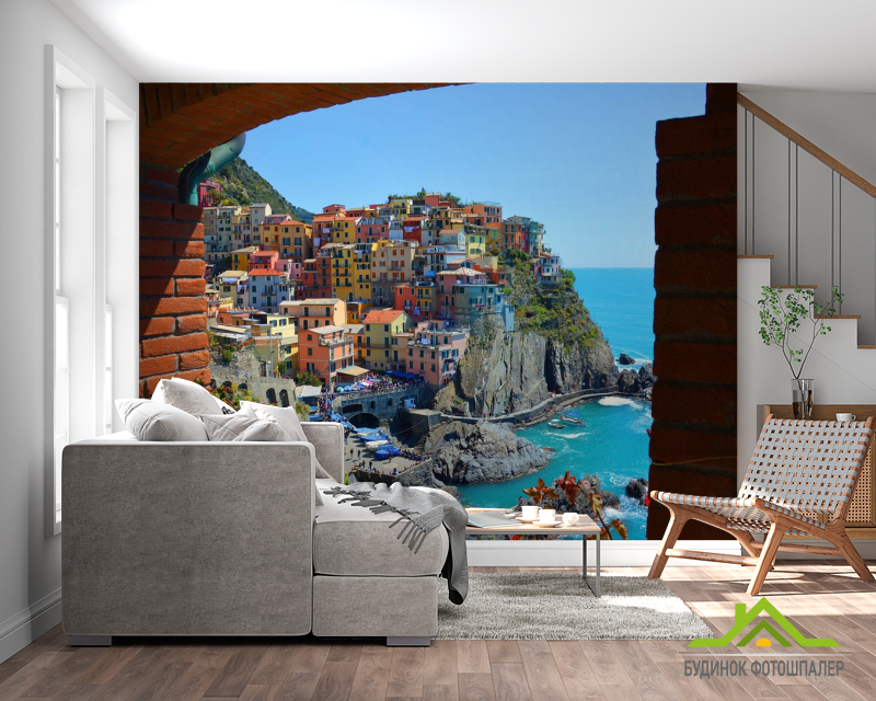 Фотообои разноцветные домики над морем Фотообои разноцветные домики над морем