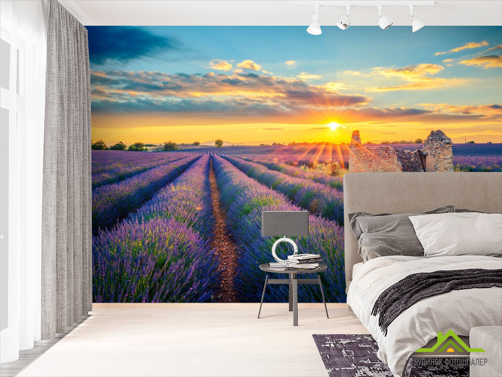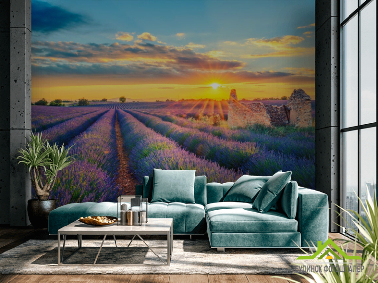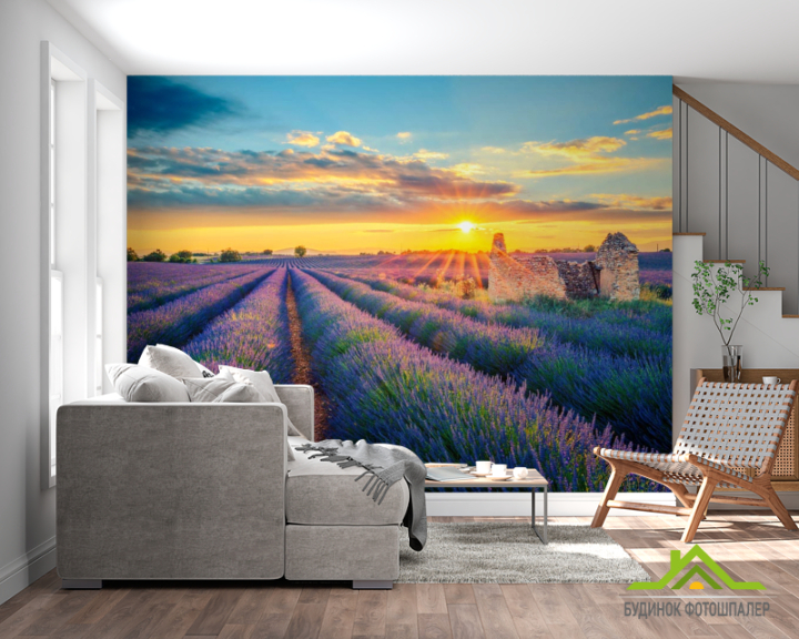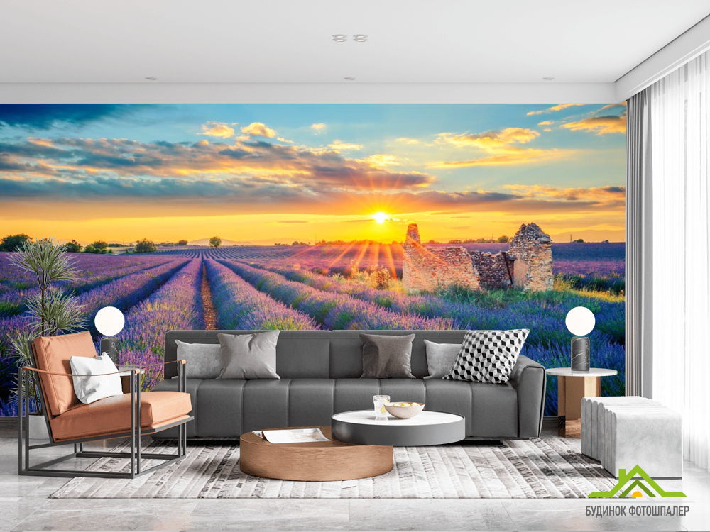 Фотообои разрушеный домик в лавандовом поле Фотообои разрушеный домик в лавандовом поле
