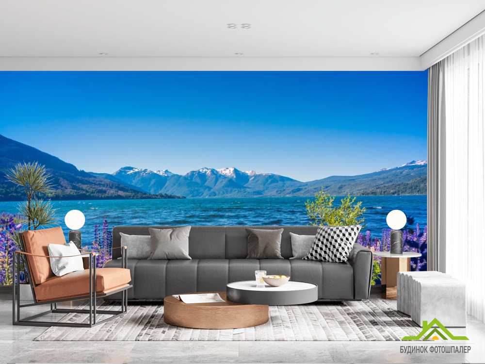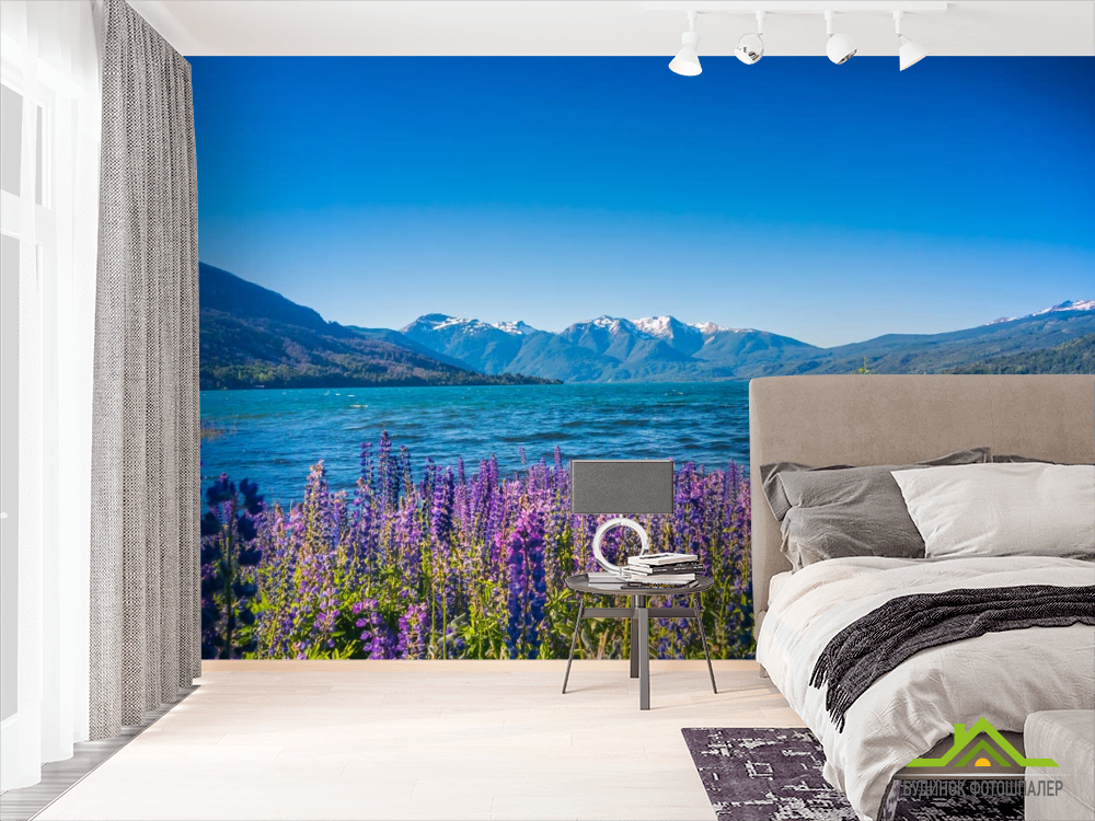 Фотообои горная лаванда на берегу озера Фотообои горная лаванда на берегу озера
