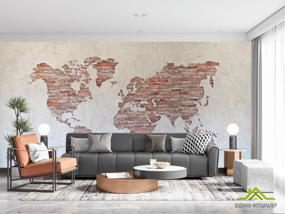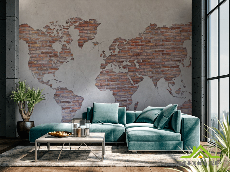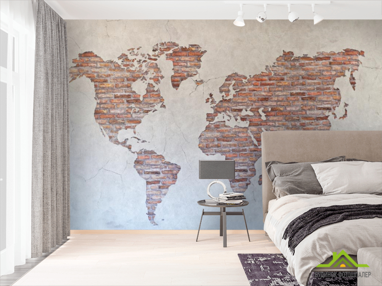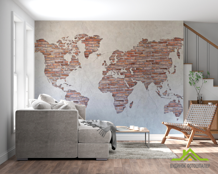 Фотообои Карта на стене из кирпичей Фотообои Карта на стене из кирпичей