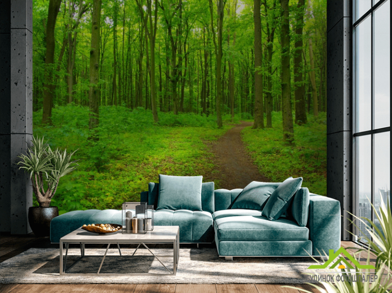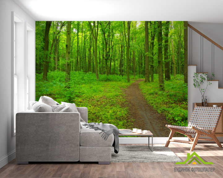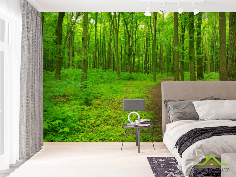 Фотообои ярко-зеленый лес