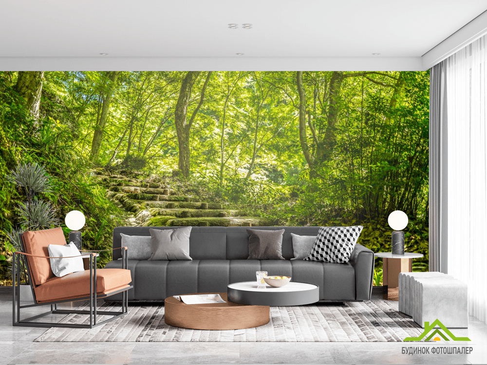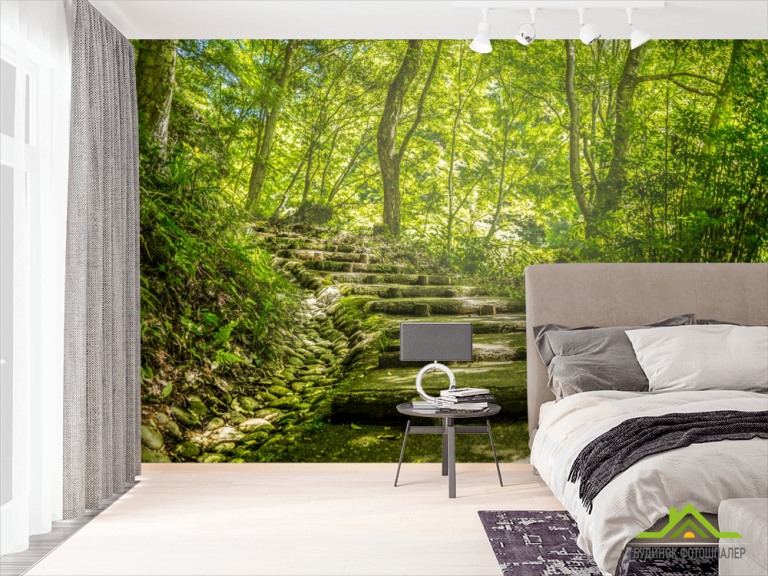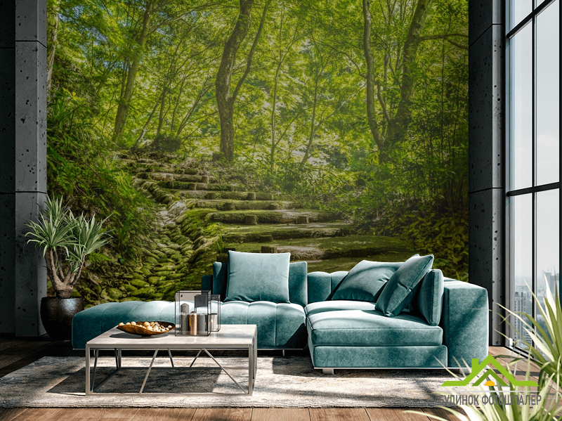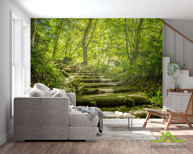 Фотообои деревянные ступеньки в лесу Фотообои деревянные ступеньки в лесу