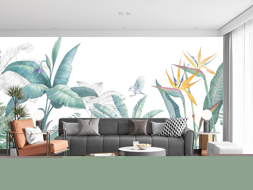 Фотообои рисованные листья и птичка Фотообои рисованные листья и птичка