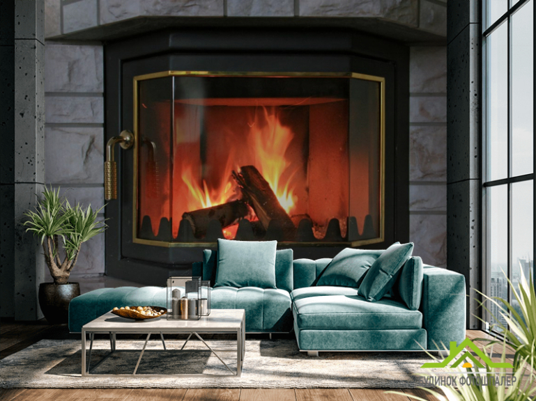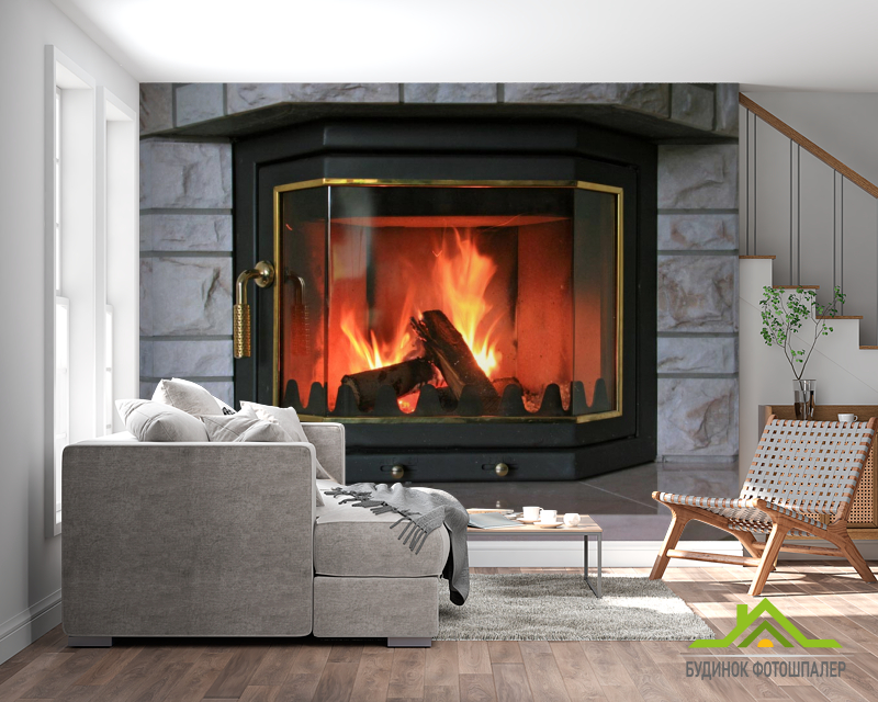 Фотообои камин за стеклом