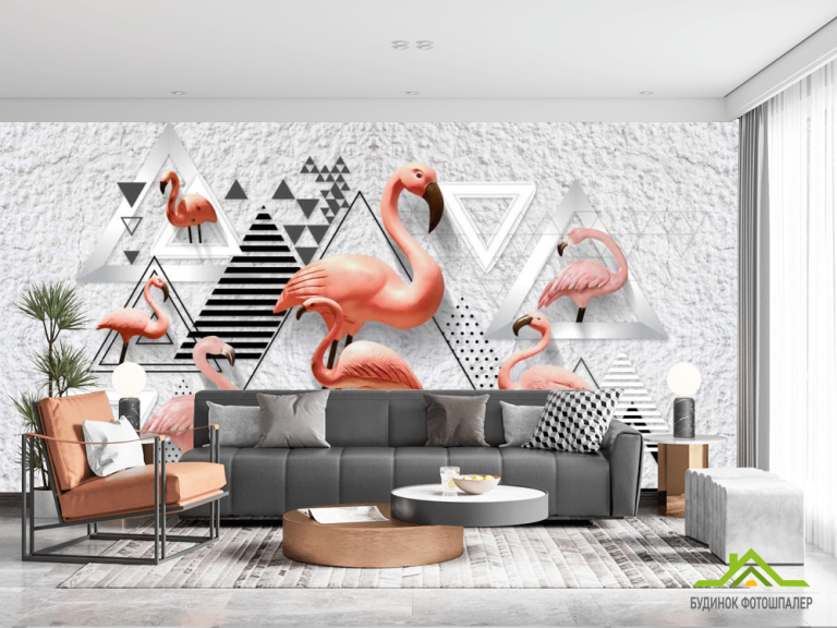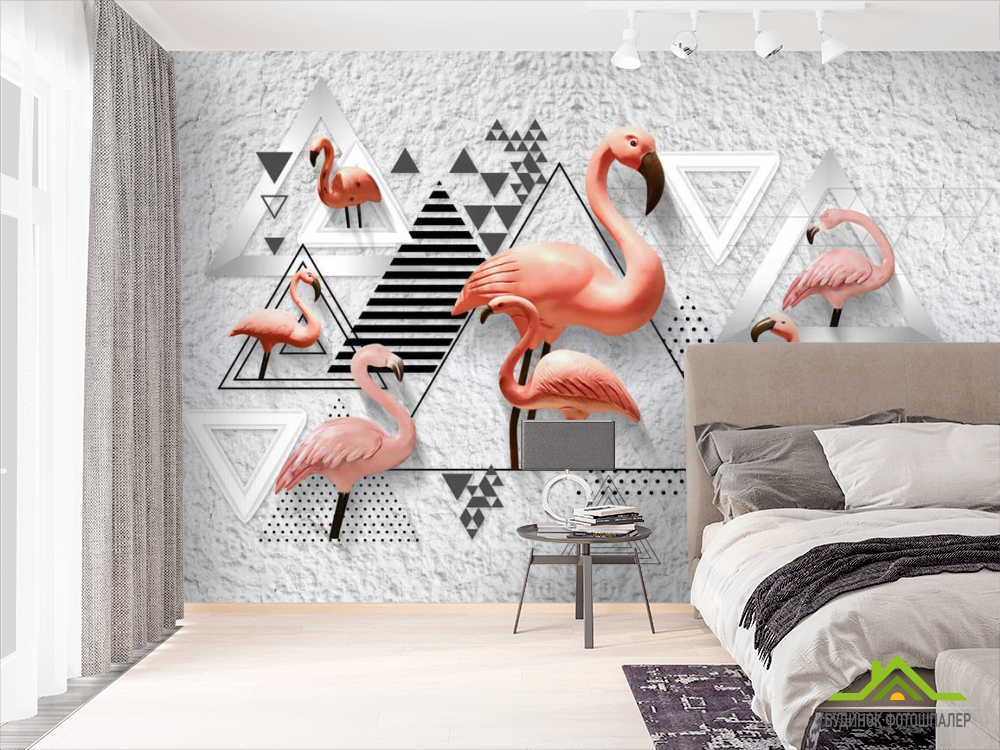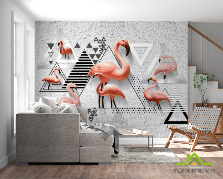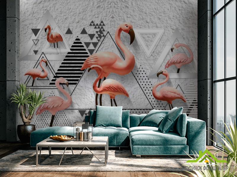 Фотообои Фламинго и геометрия Фотообои Фламинго и геометрия