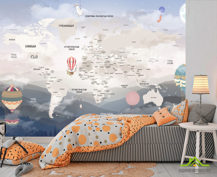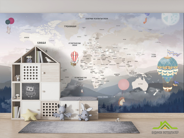 Фотообои Карта детская на фоне скандинавских гор на украинском Фотообои Карта детская на фоне скандинавских гор на украинском