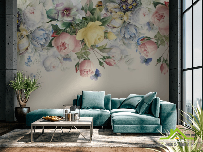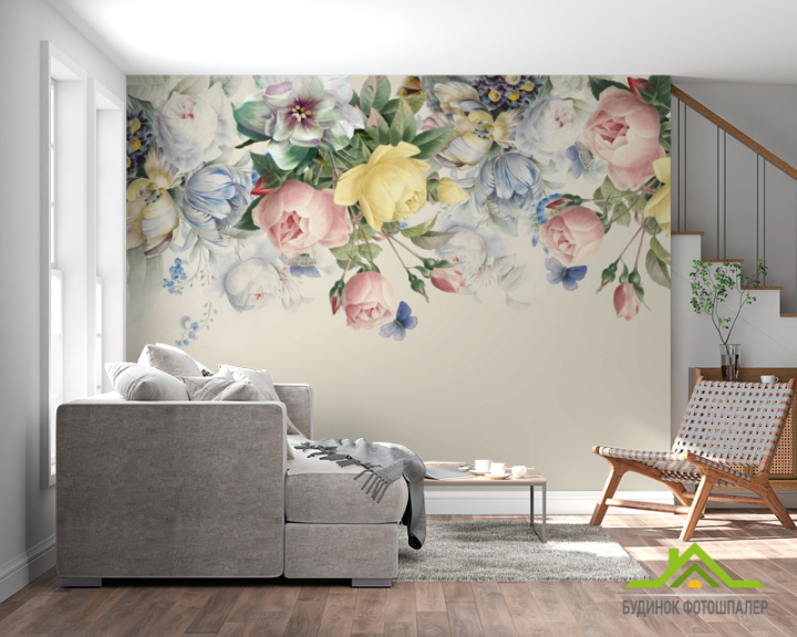 Фотообои Нежные винтажные цветы с потолка Фотообои Нежные винтажные цветы с потолка