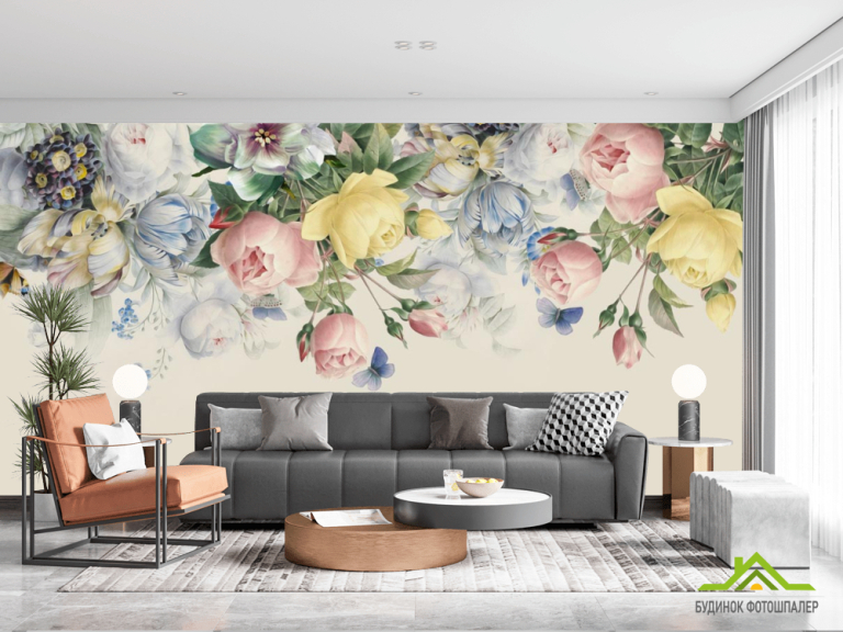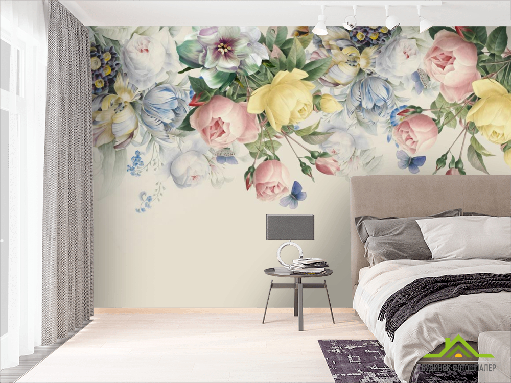 Фотообои Нежные винтажные цветы с потолка