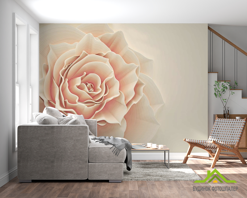 Фотообои Бежевая обьемная роза Фотообои Бежевая обьемная роза