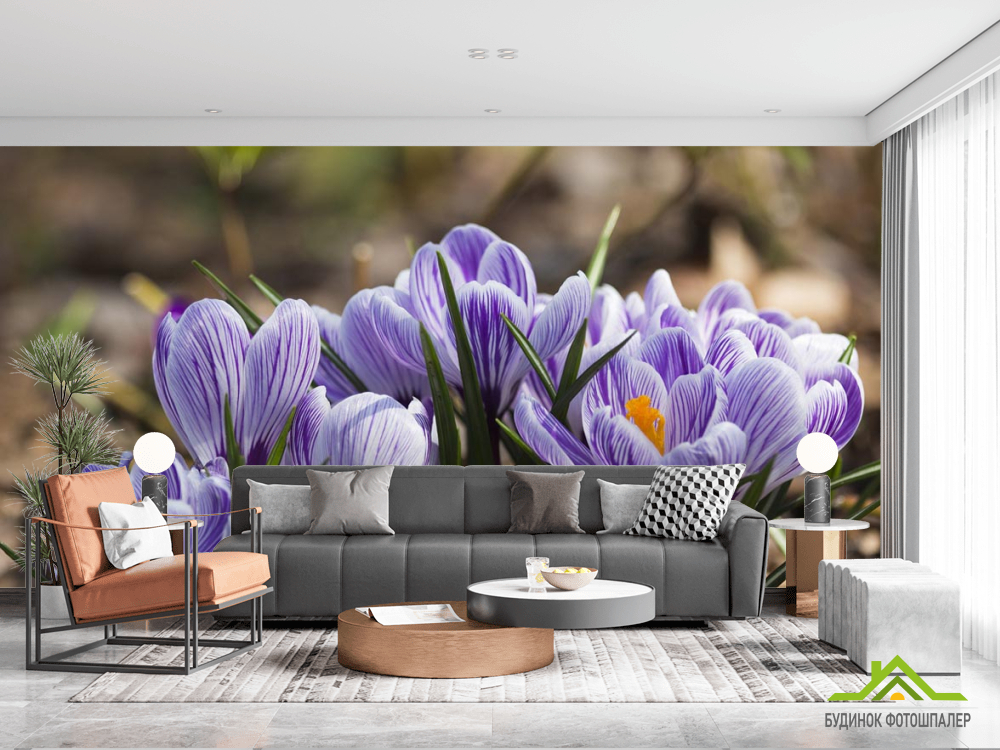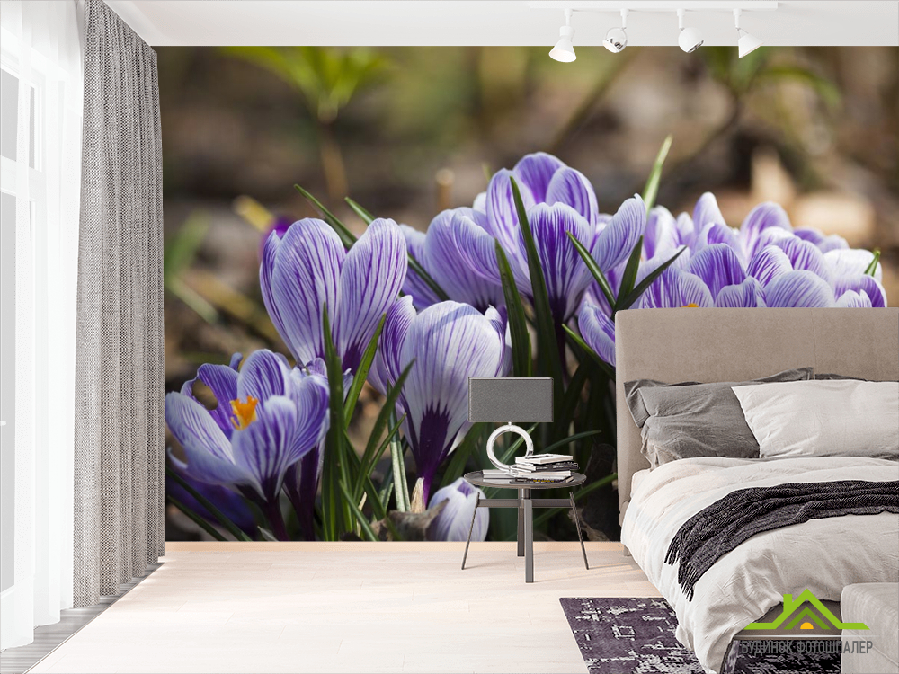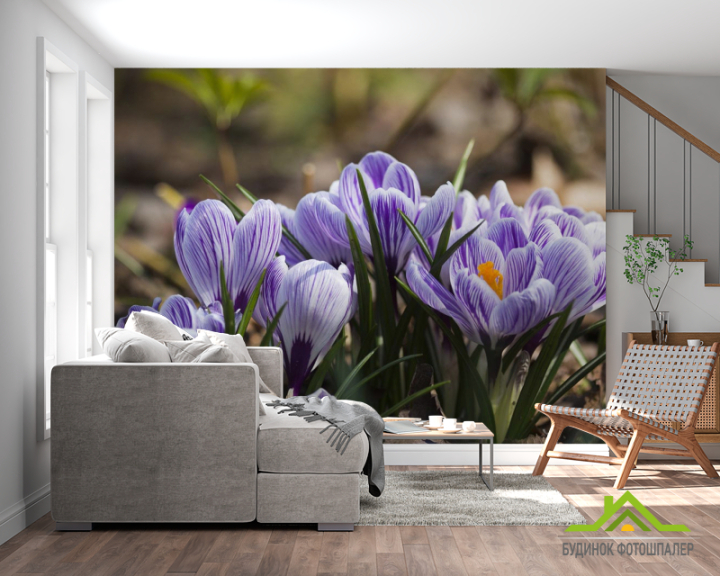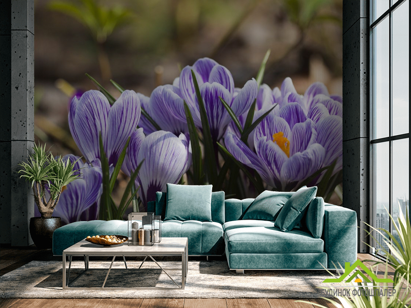 Фотообои Крокусы фиолетовые Фотообои Крокусы фиолетовые