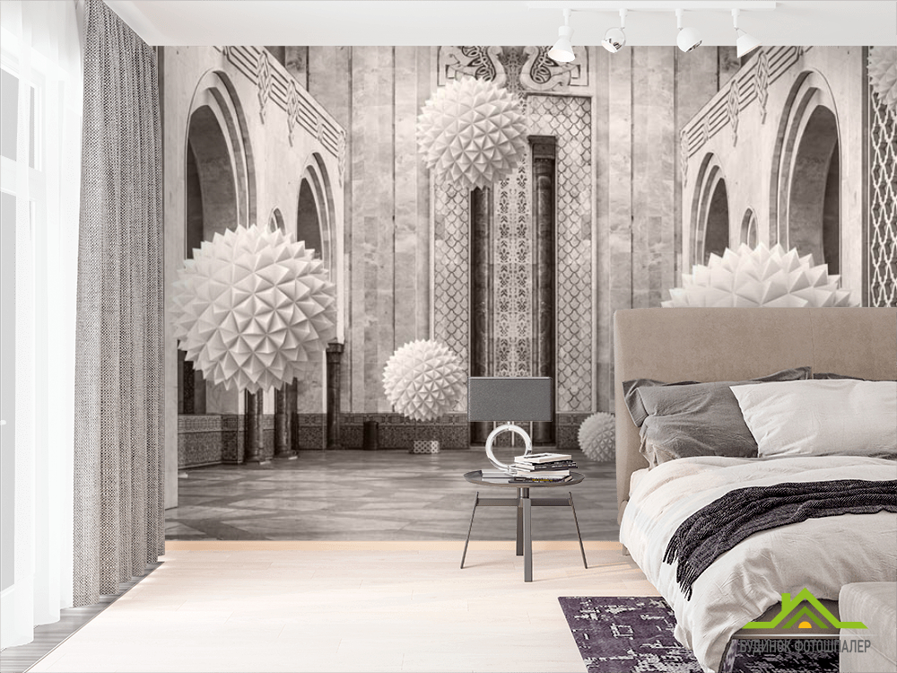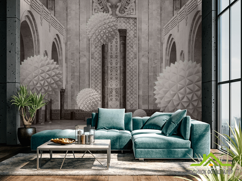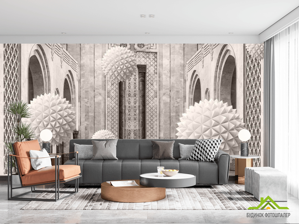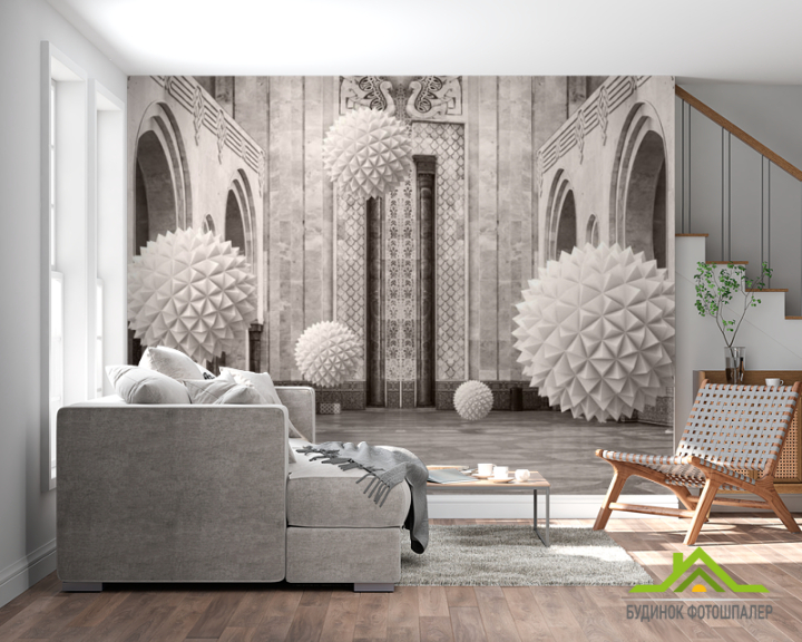 3д фотообои 3д шары в арках