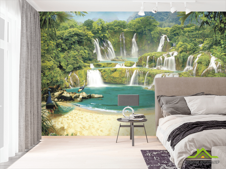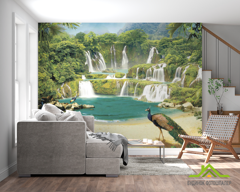 Фотообои Водопад с павлинами Фотообои Водопад с павлинами