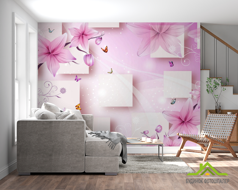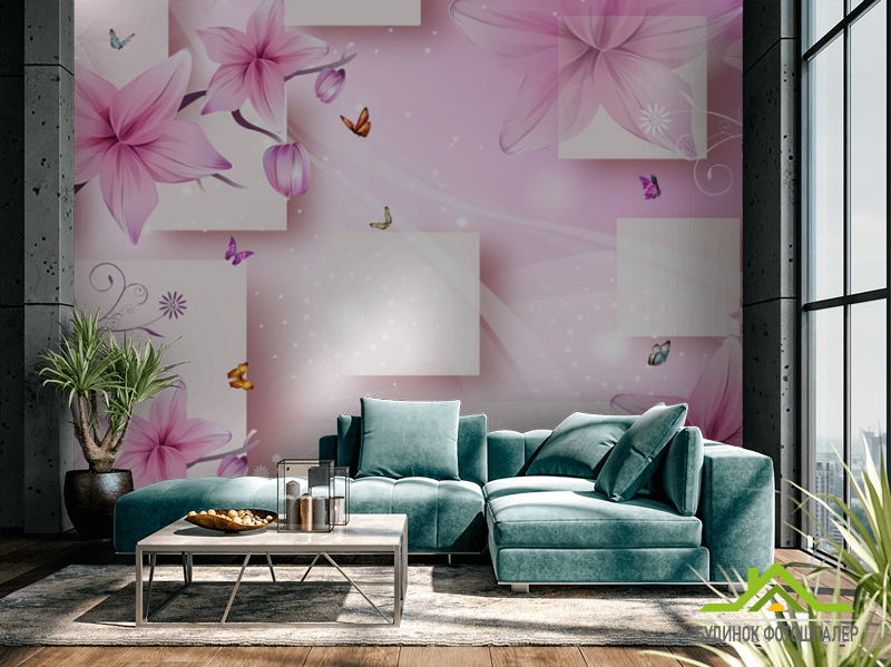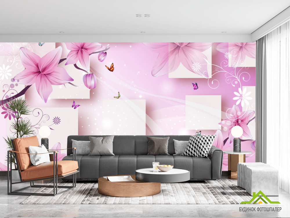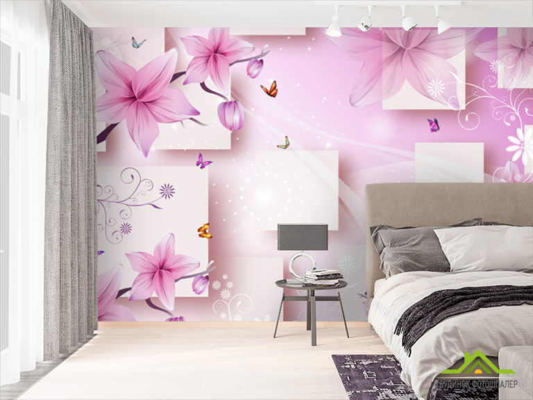 Фотообои 3д розовые цветы Фотообои 3д розовые цветы