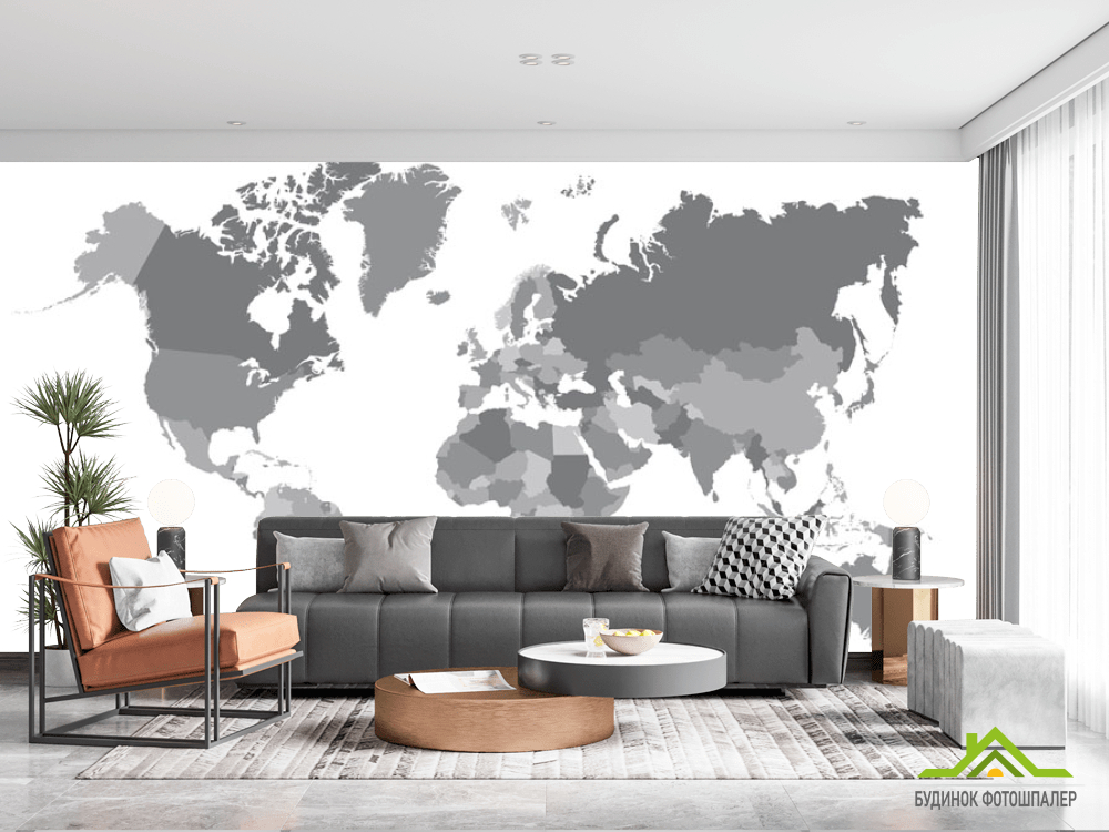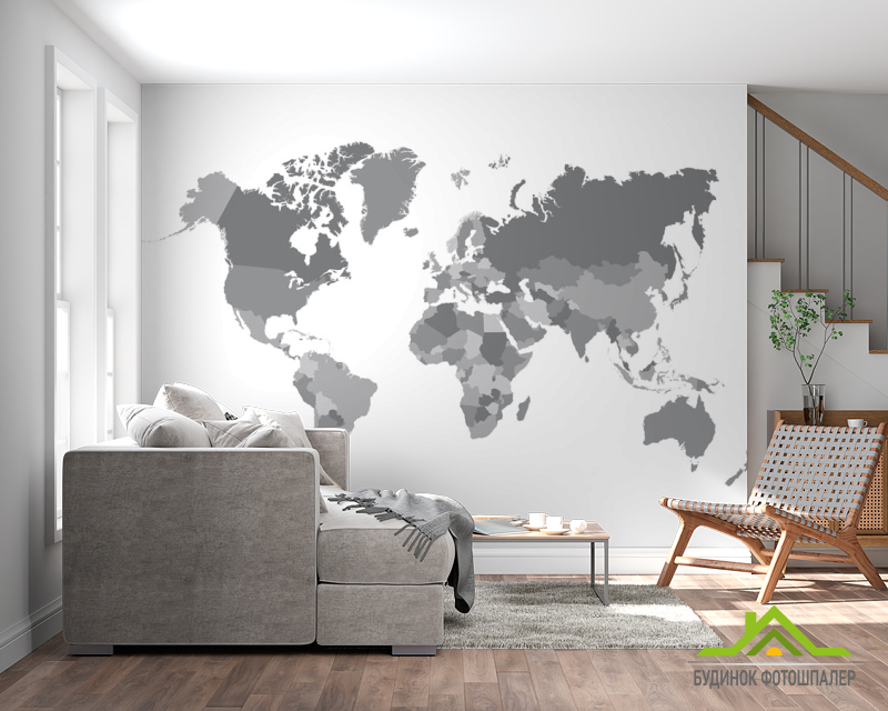 Фотообои Серая карта мира Фотообои Серая карта мира
