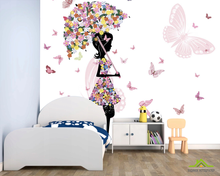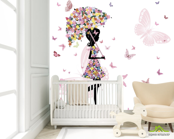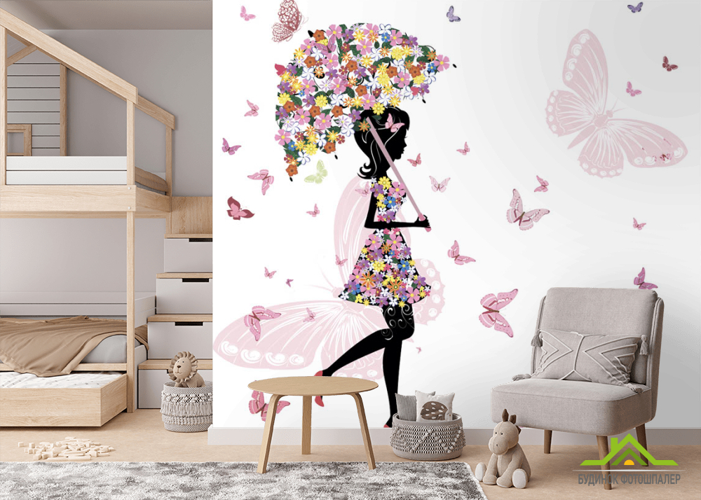 Фотообои Фея под цветочным зонтом Фотообои Фея под цветочным зонтом