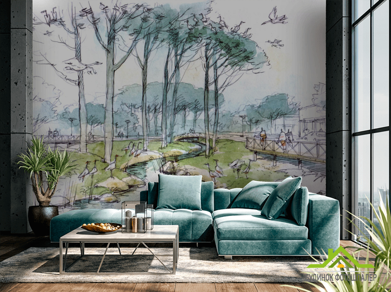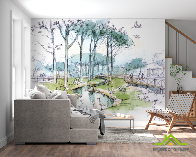 Фотообои Акварельный пруд Фотообои Акварельный пруд