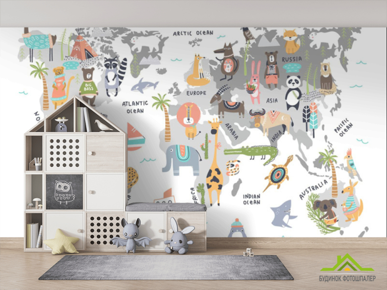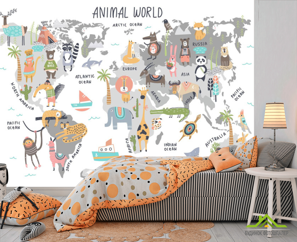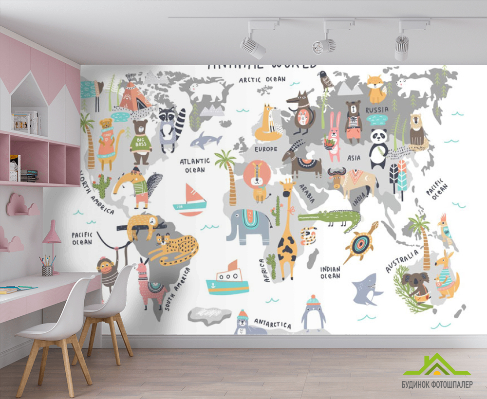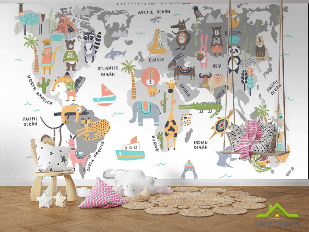 Фотообои Детская карта с животными Фотообои Детская карта с животными