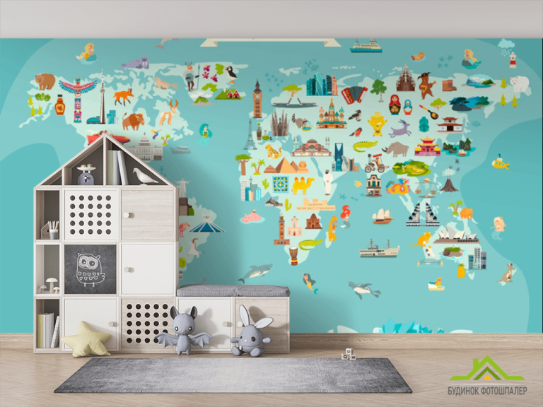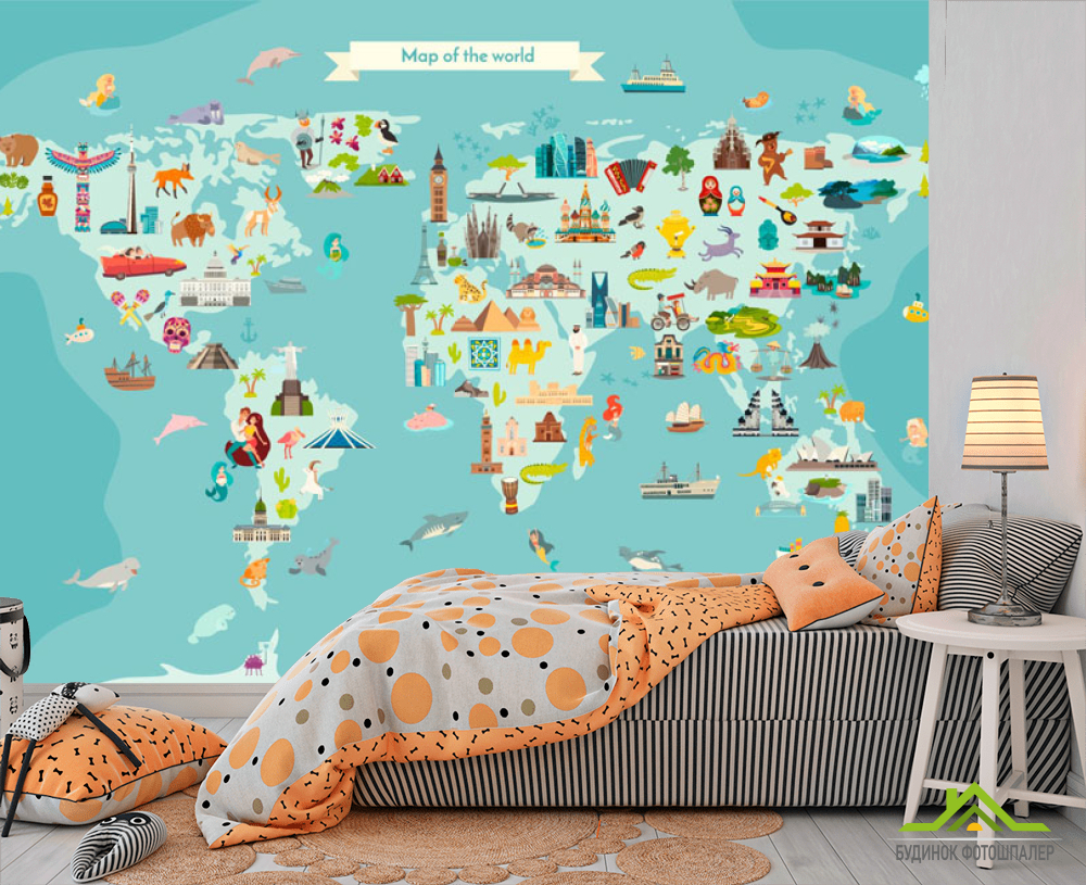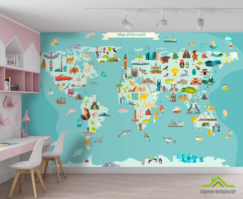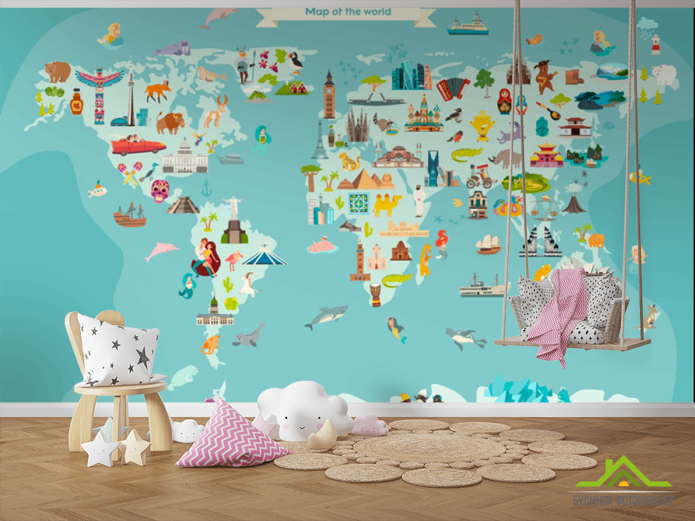 Фотообои Бирюзовая детская карта Фотообои Бирюзовая детская карта