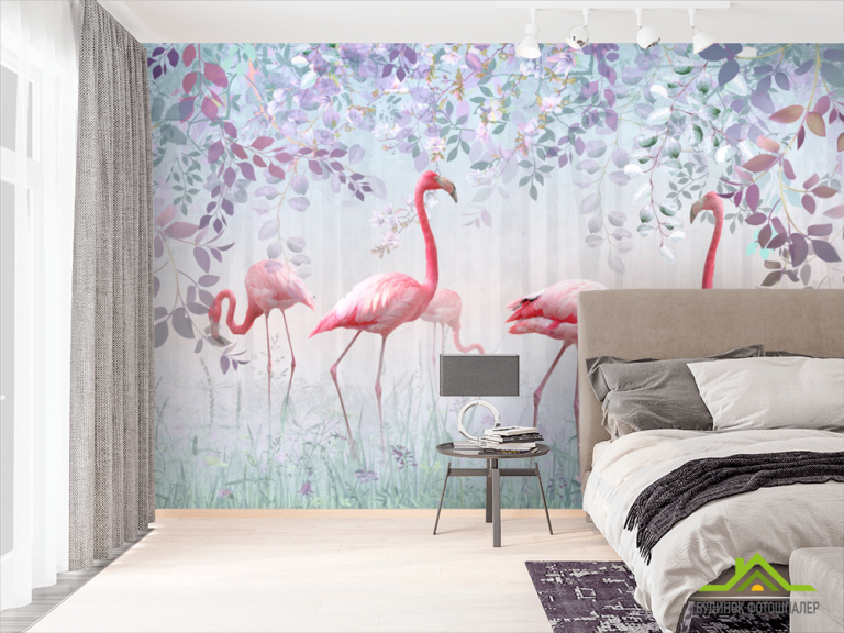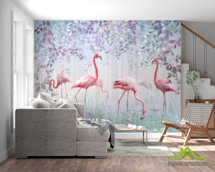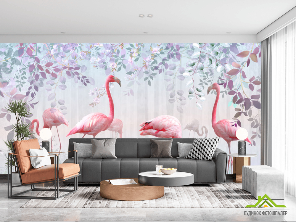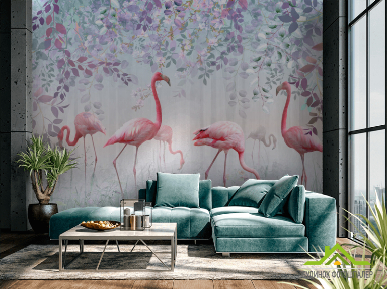 Фотообои Фламинго и зелень Фотообои Фламинго и зелень
