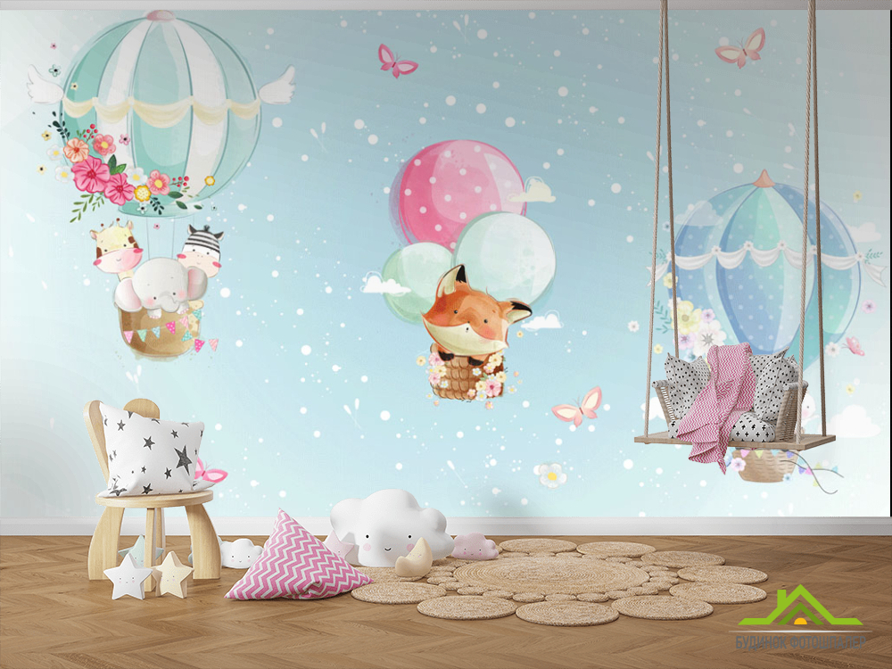 Фотообои Голубые воздушные шарики Фотообои Голубые воздушные шарики