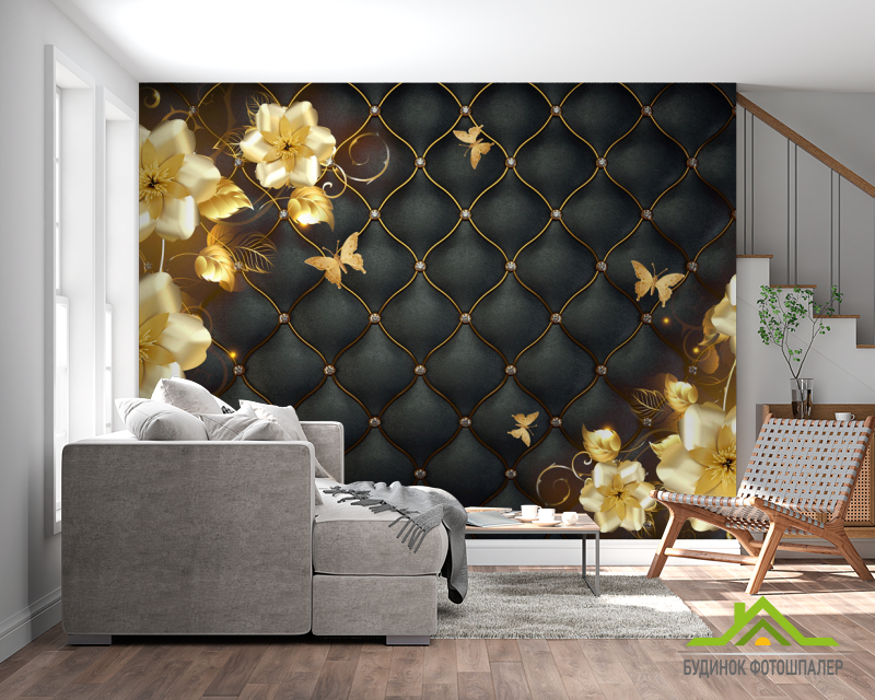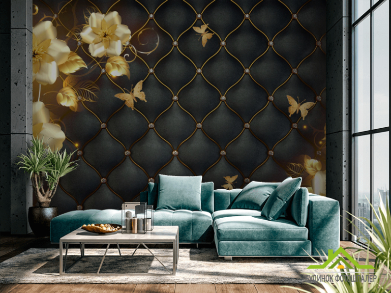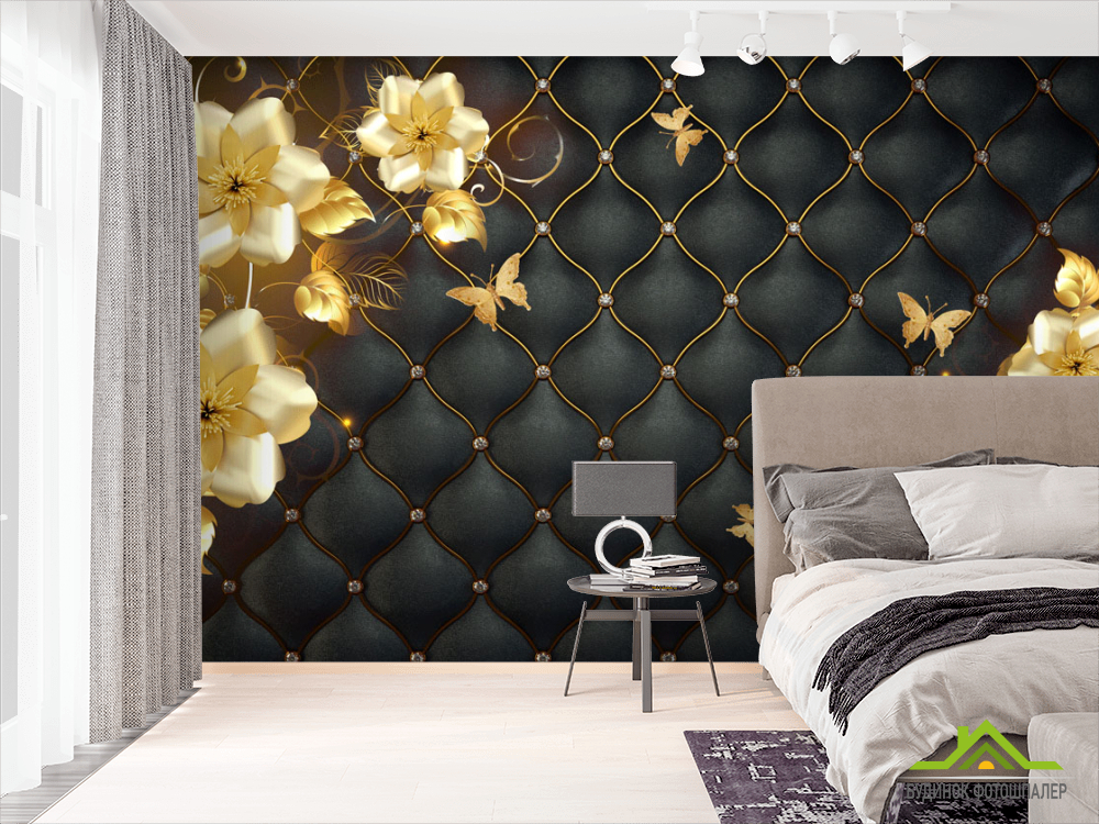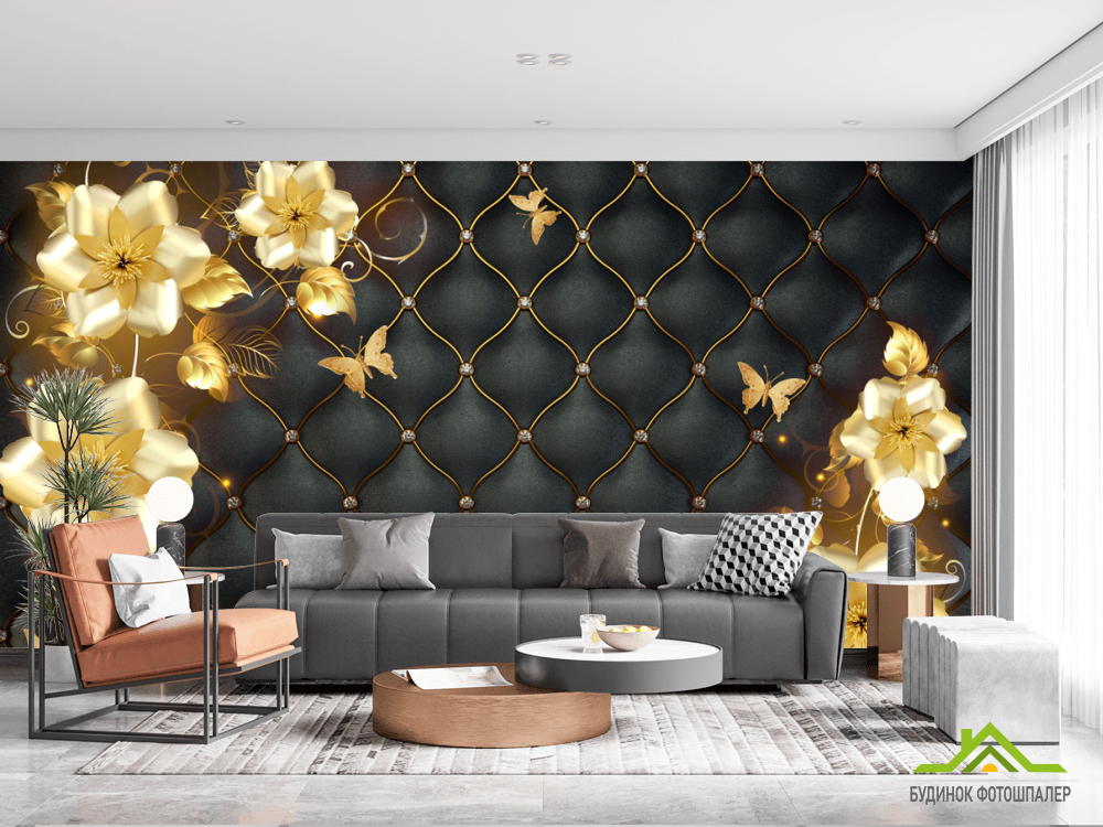 Фотообои 3д золотые цветы топлер Фотообои 3д золотые цветы топлер