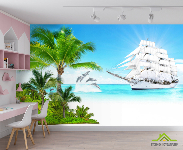 Фотообои Пиратский корабль в море Фотообои Пиратский корабль в море
