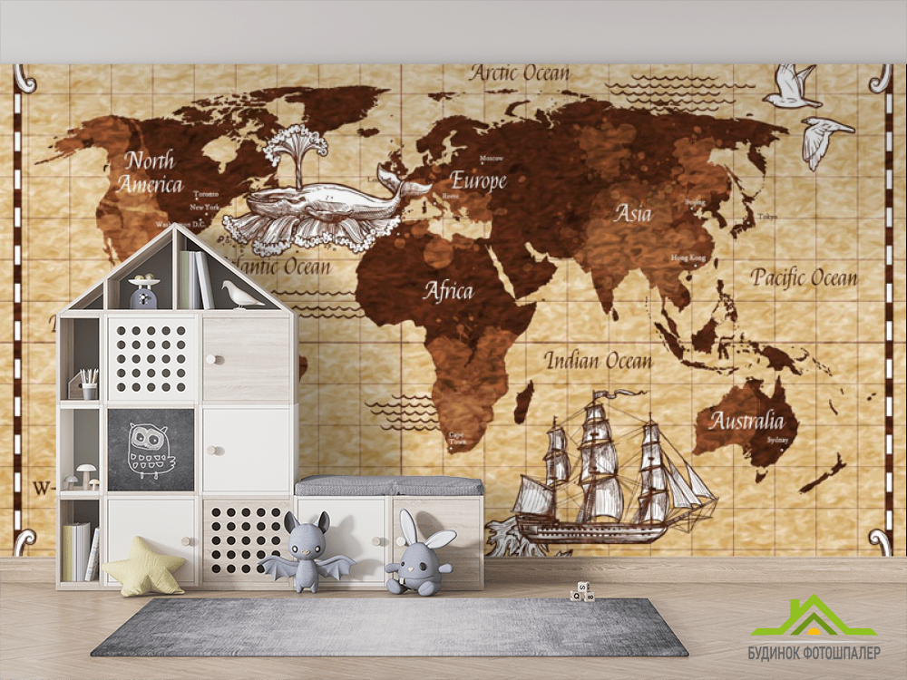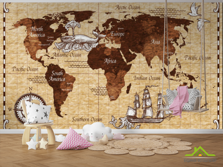 Фотообои Винтажная карта детская коричневая Фотообои Винтажная карта детская коричневая