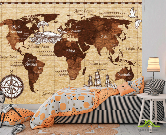 Фотообои Винтажная карта детская коричневая