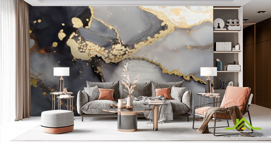 Фотообои чб флюид с золотом Фотообои чб флюид с золотом