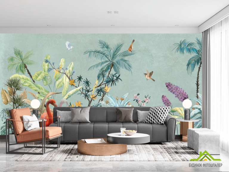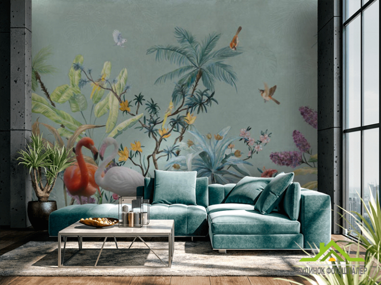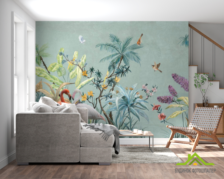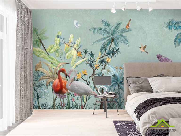 Фотообои фламинго и пальмы Фотообои фламинго и пальмы