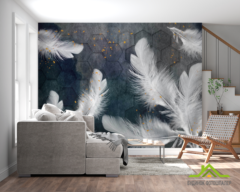 Фотообои Белые перья с золотом Фотообои Белые перья с золотом