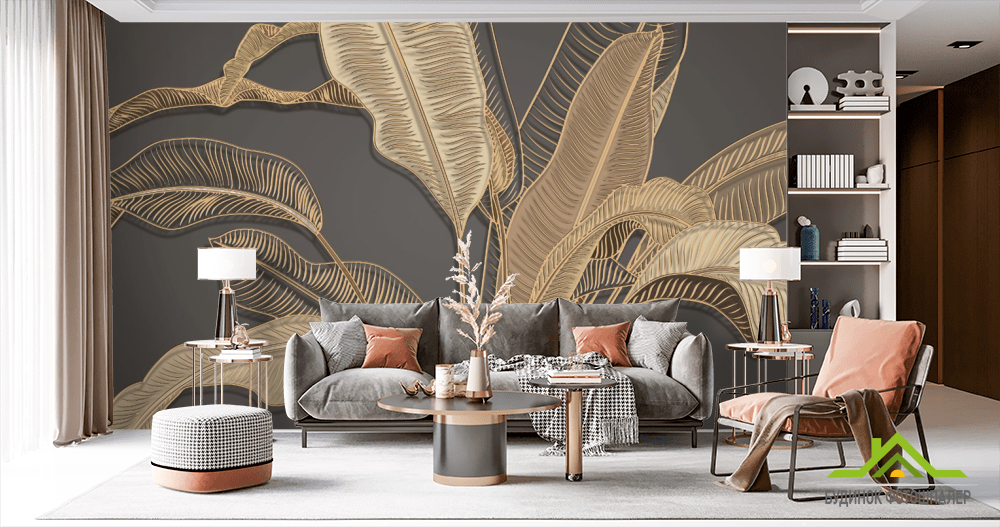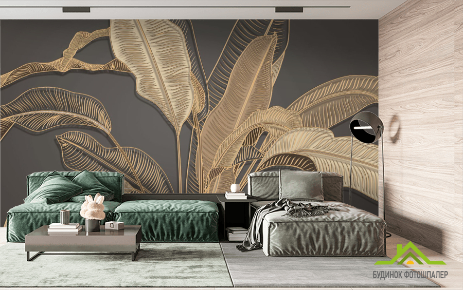 Фотообои золотые банановые листья