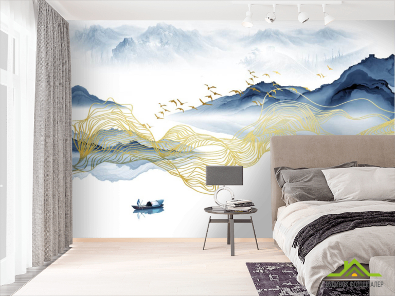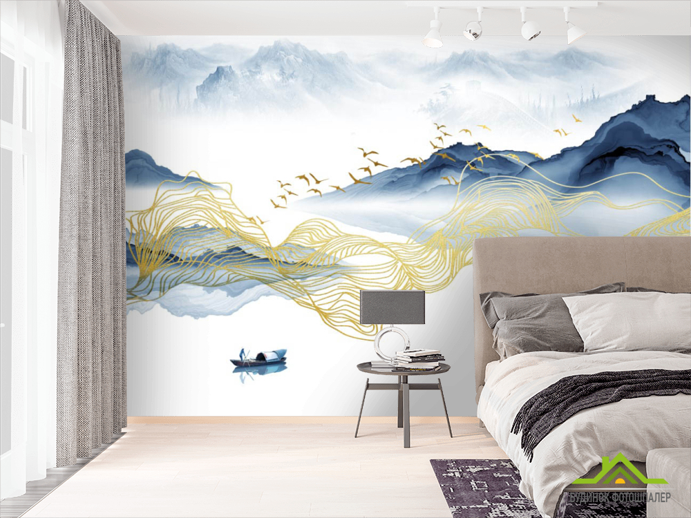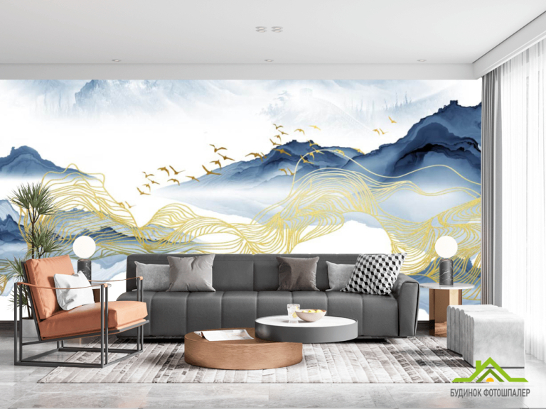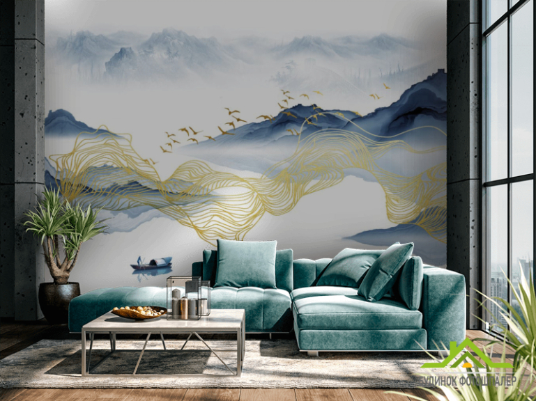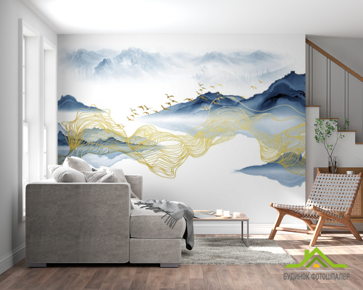 Фотообои Волны из синей и золотой абстракции Фотообои Волны из синей и золотой абстракции