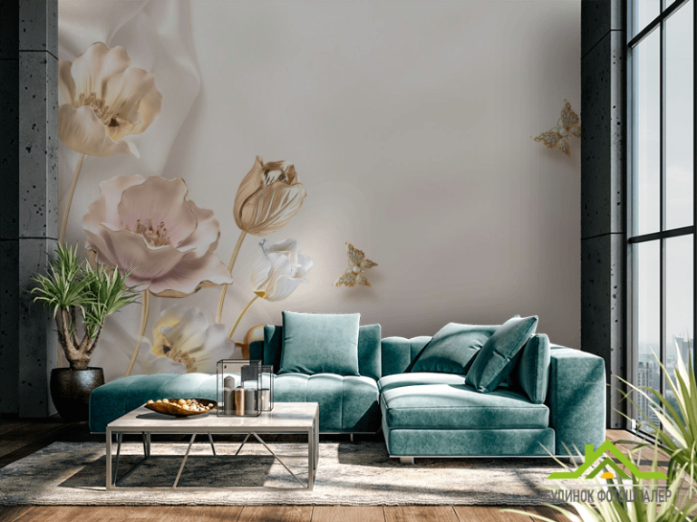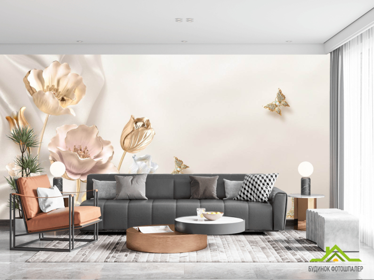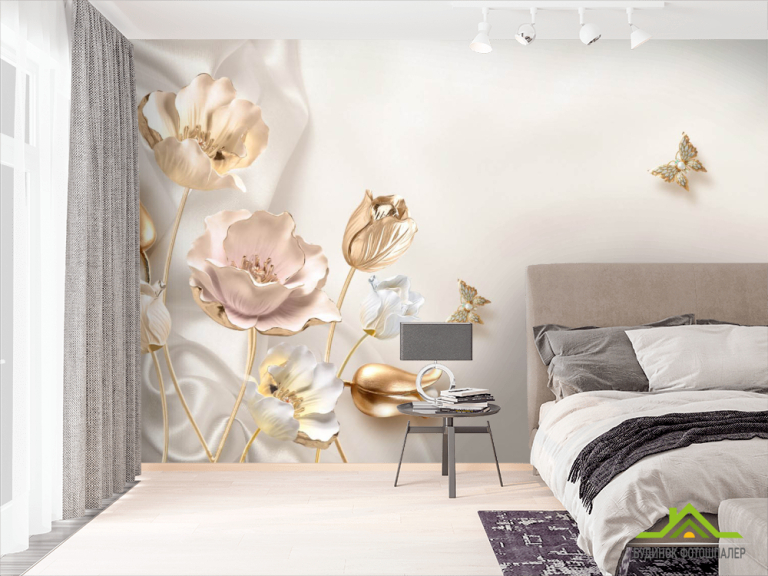 Фотообои Золотые 3д цветы Фотообои Золотые 3д цветы