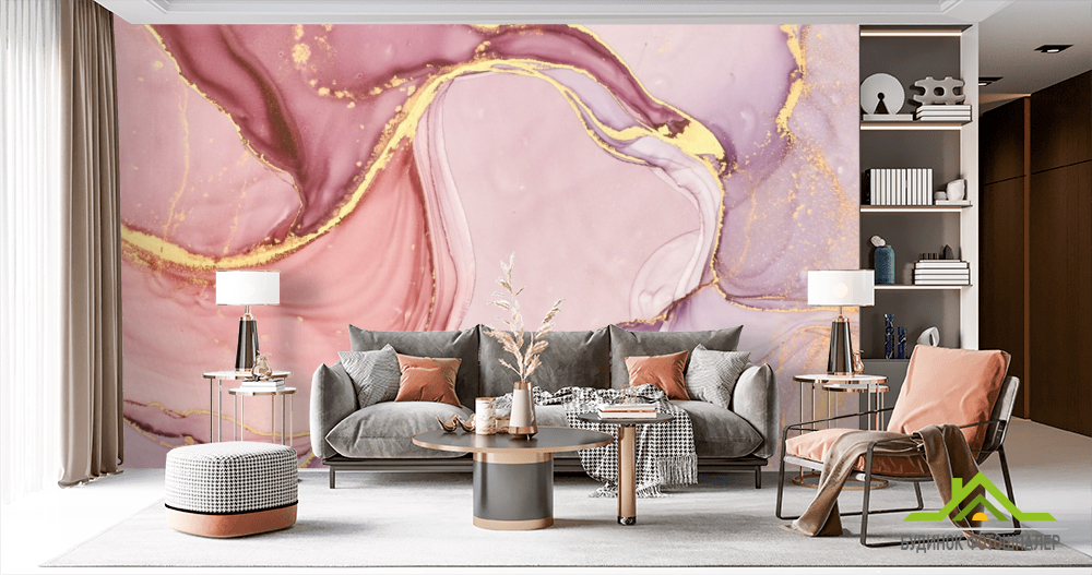 Фотообои розовый флюид золото