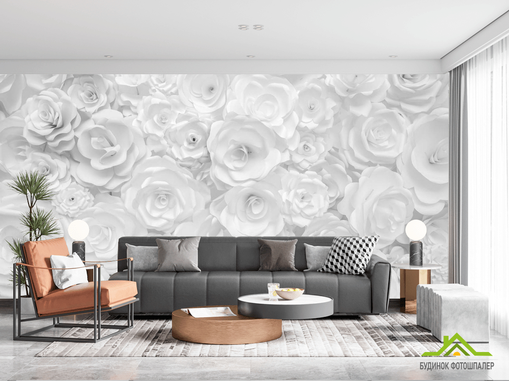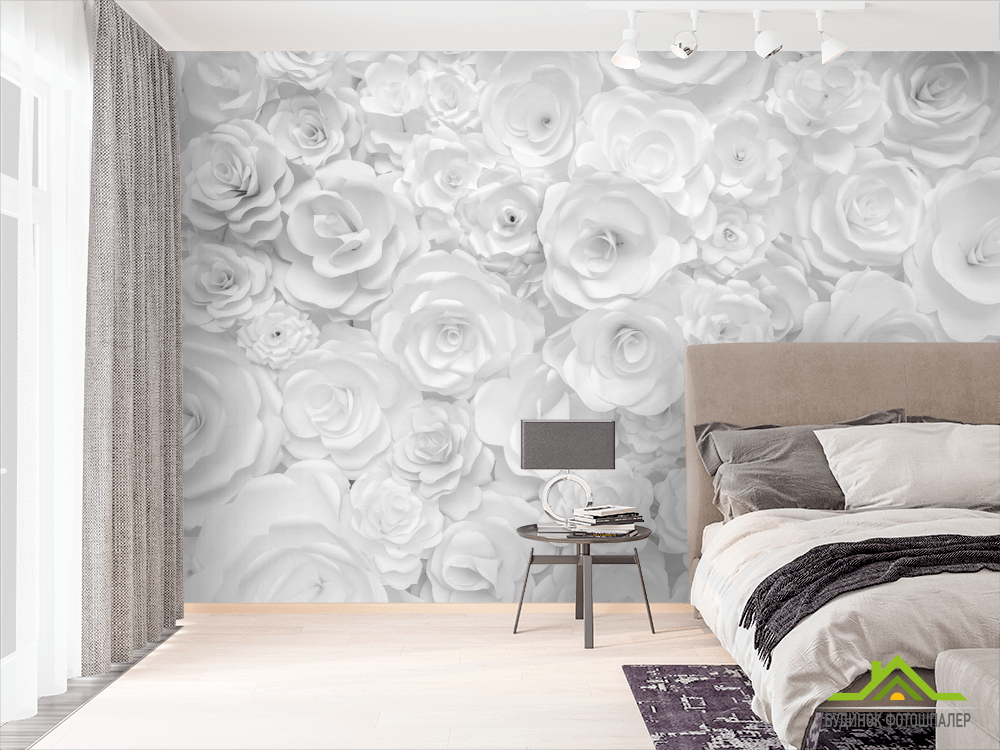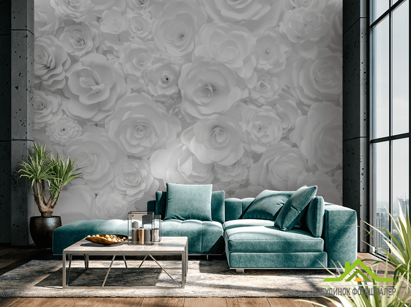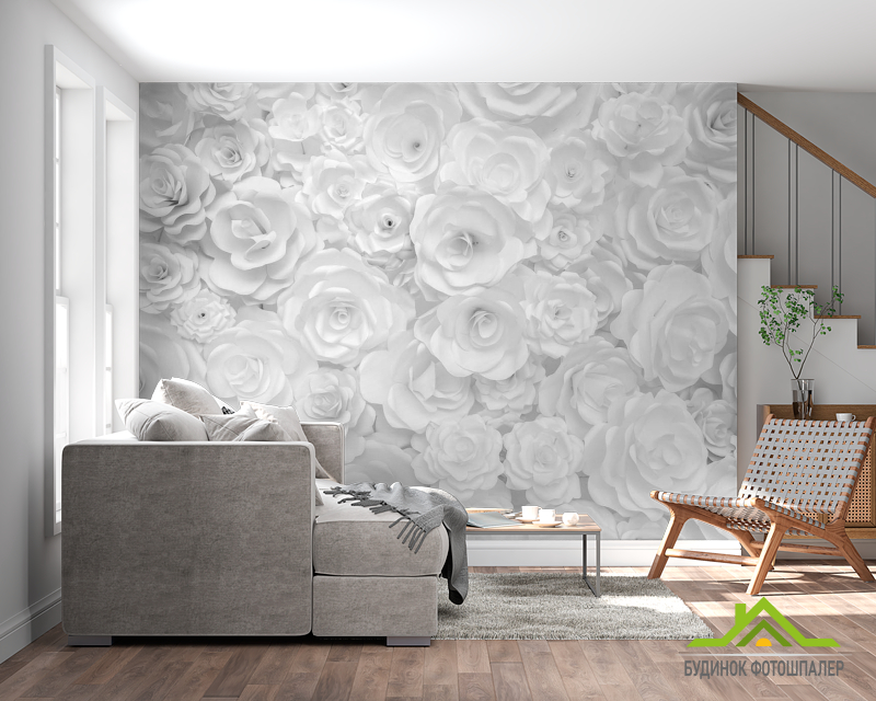 Фотообои Белая стена из бумажных цветов Фотообои Белая стена из бумажных цветов