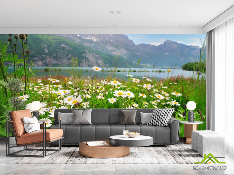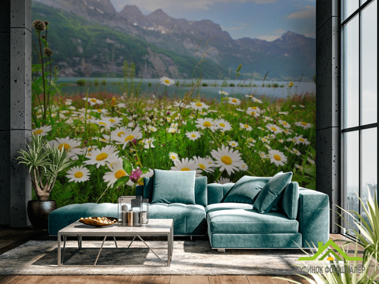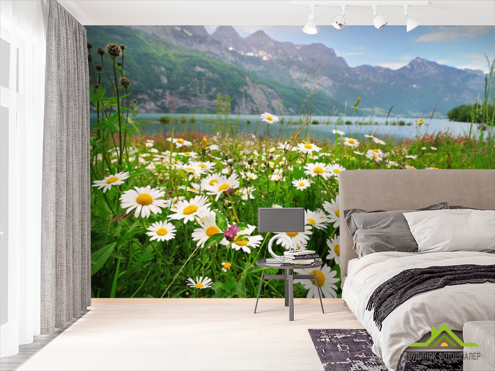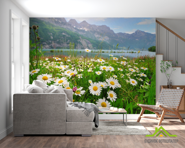 Фотообои ромашки и горы Фотообои ромашки и горы