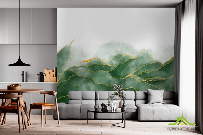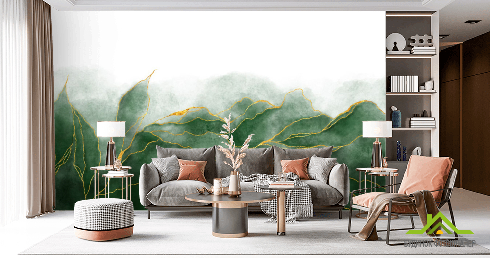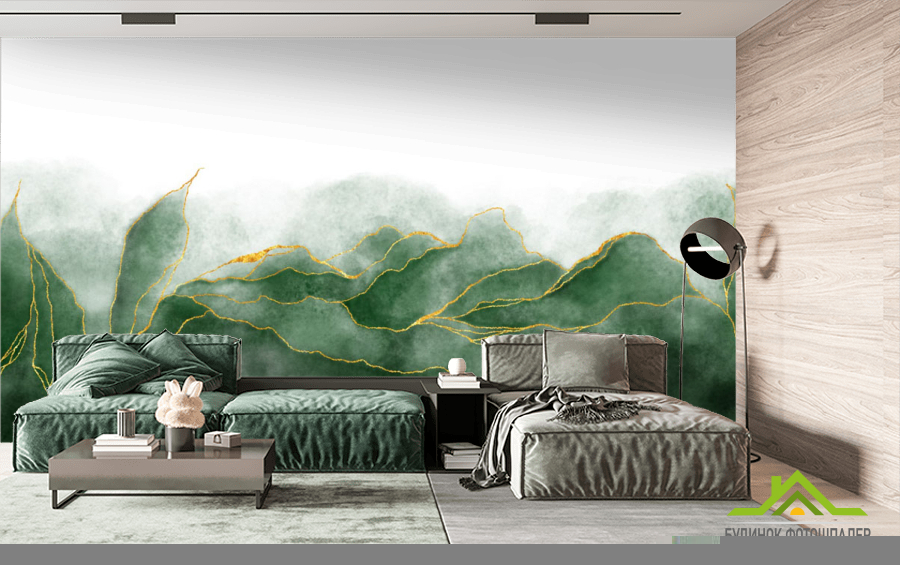 Фотообои зелёная акварель с золотом Фотообои зелёная акварель с золотом