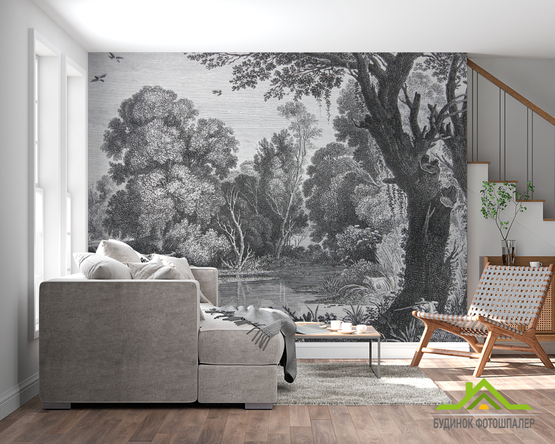 Фотообои Деревья гравюра Фотообои Деревья гравюра