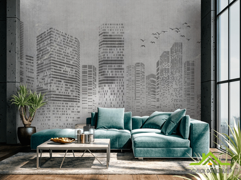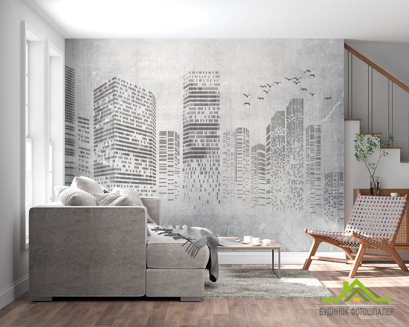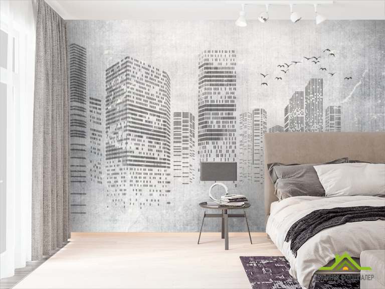 Фотообои Высотки современного города чб Фотообои Высотки современного города чб