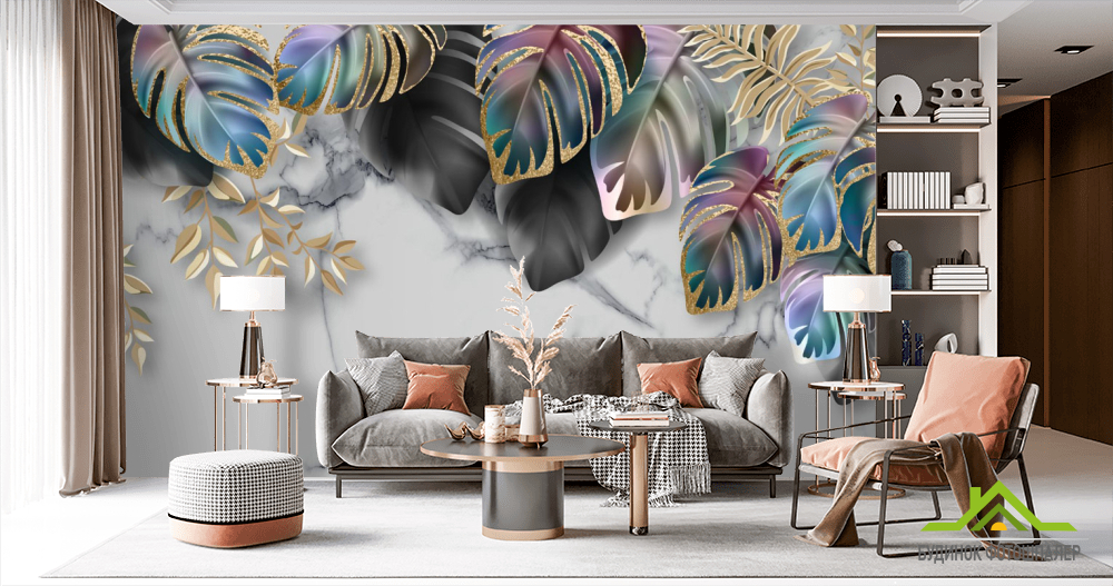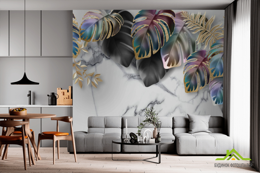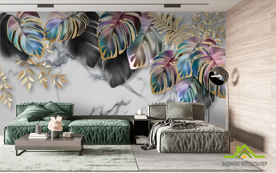 Фотообои тропические листья с золотом Фотообои тропические листья с золотом