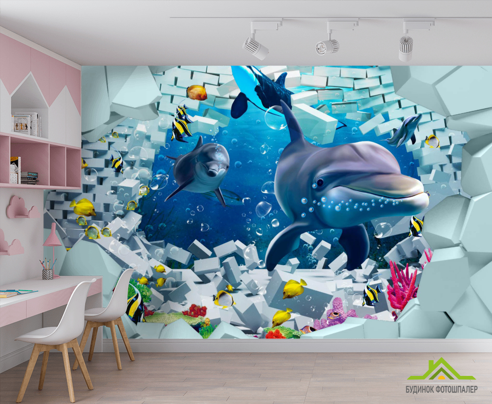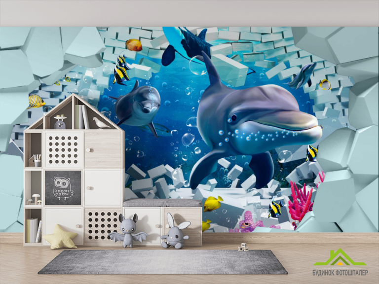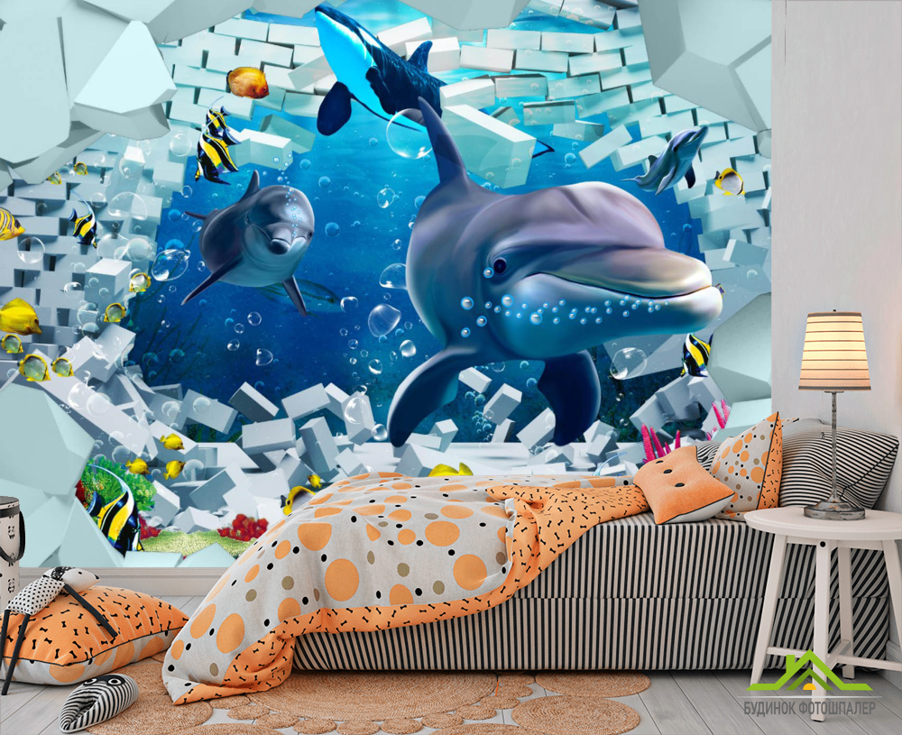 Фотообои 3д дельфины