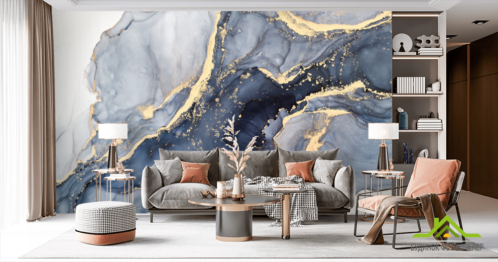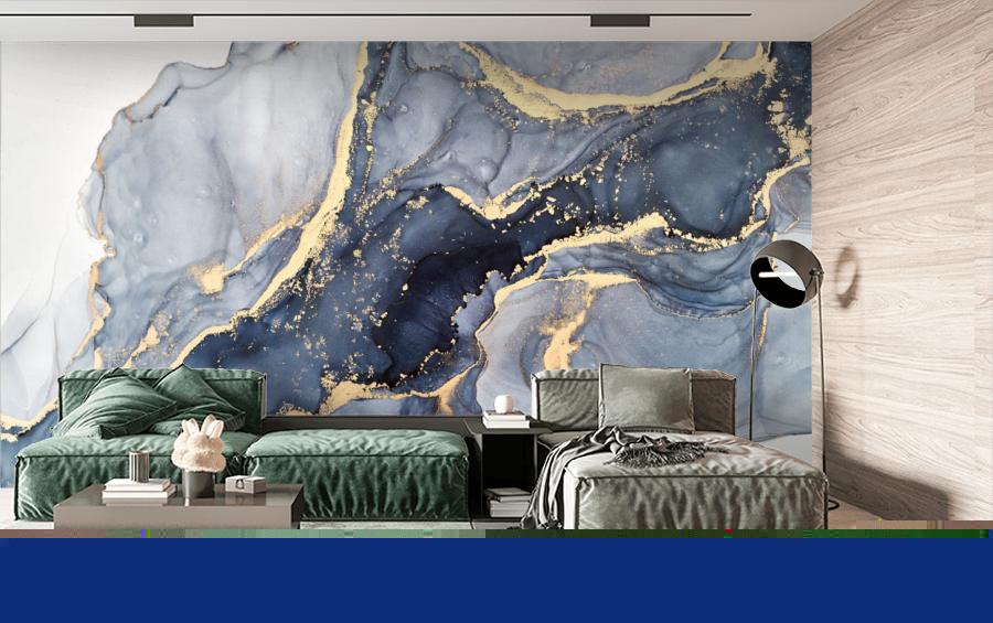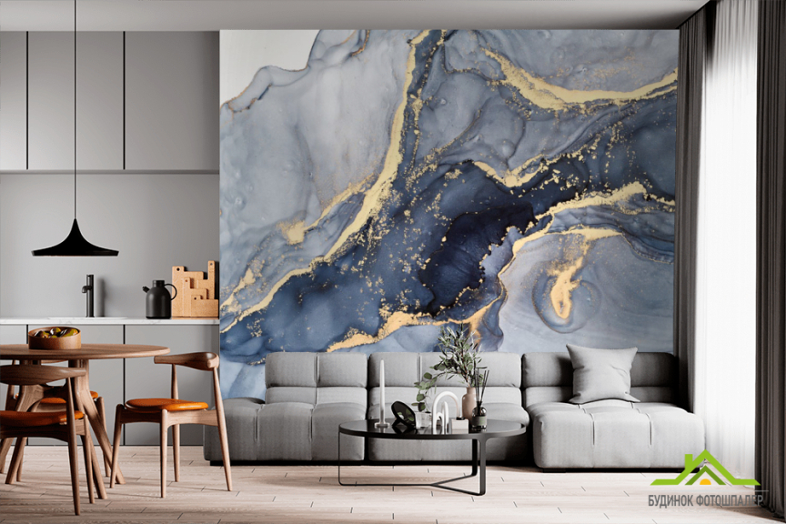Фотообои синий флюид с золотом Фотообои синий флюид с золотом