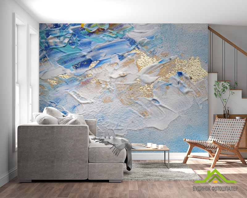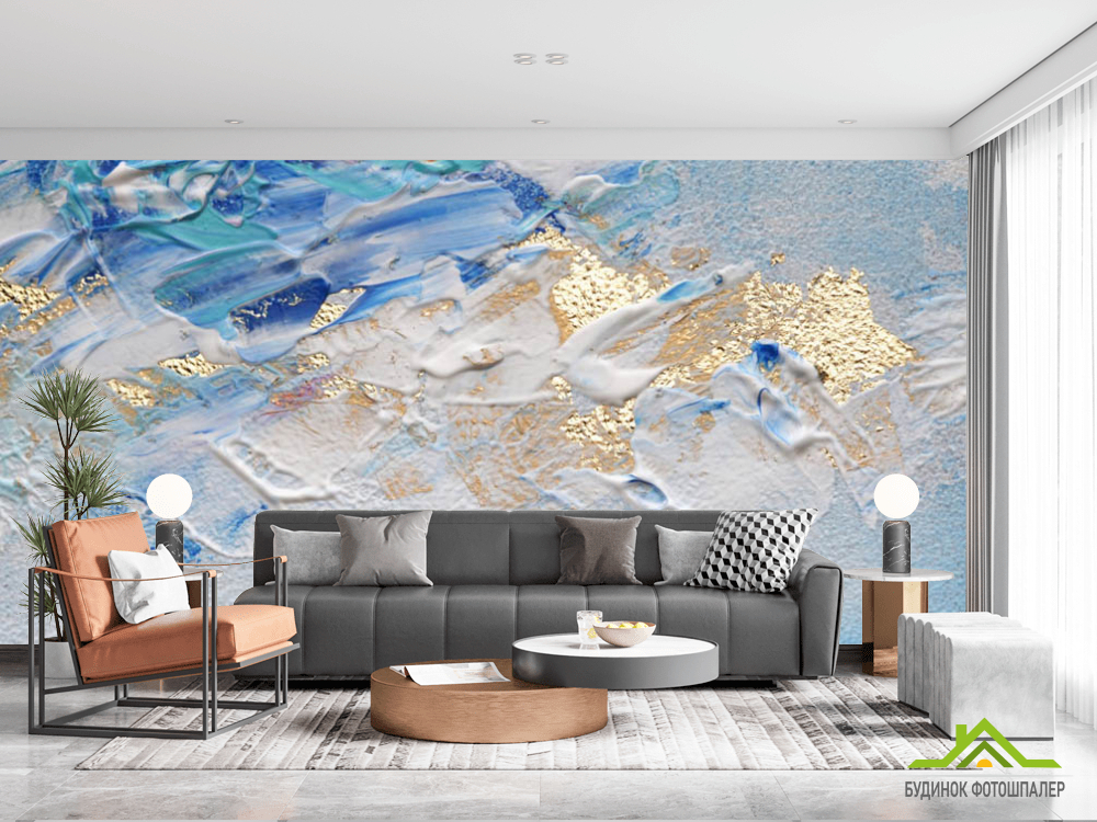 Фотообои Голубые мазки с золотом Фотообои Голубые мазки с золотом