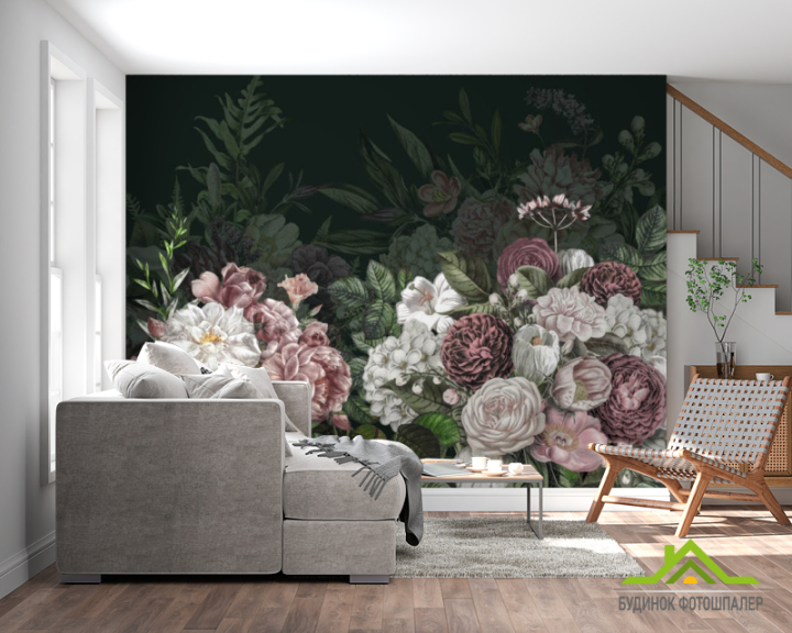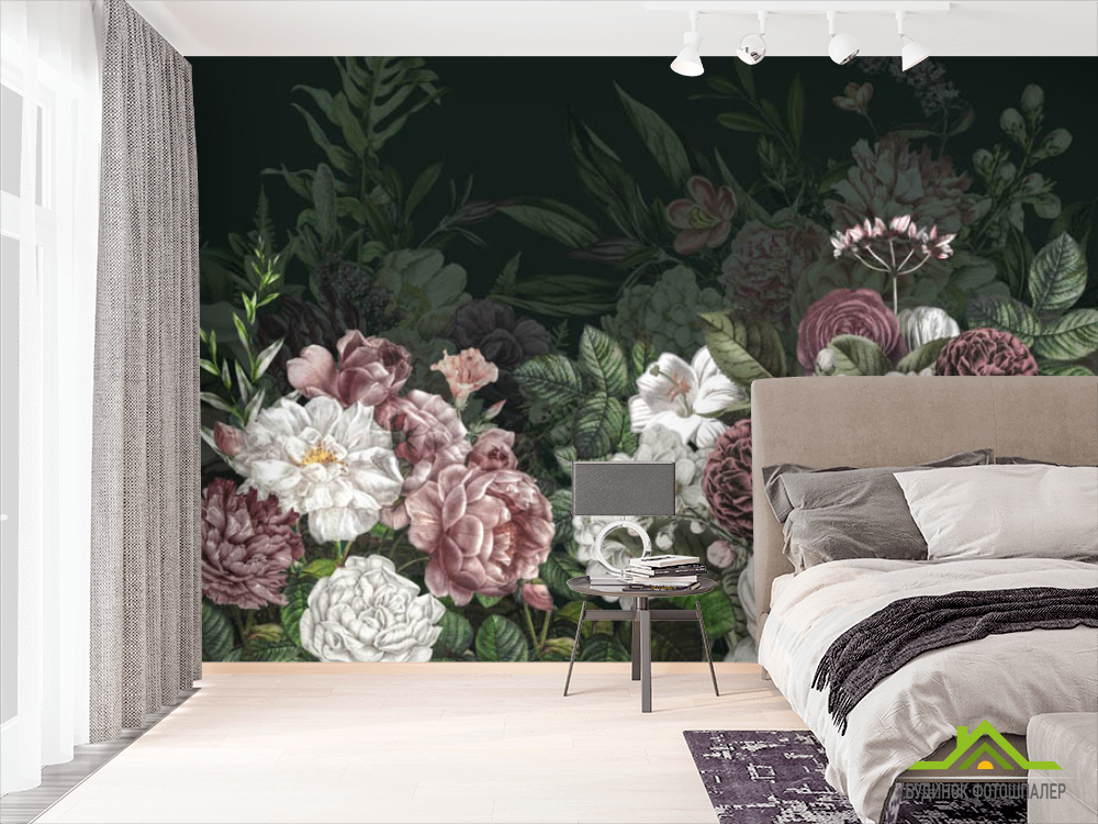 Фотообои Тёмные винтажные цветы Фотообои Тёмные винтажные цветы