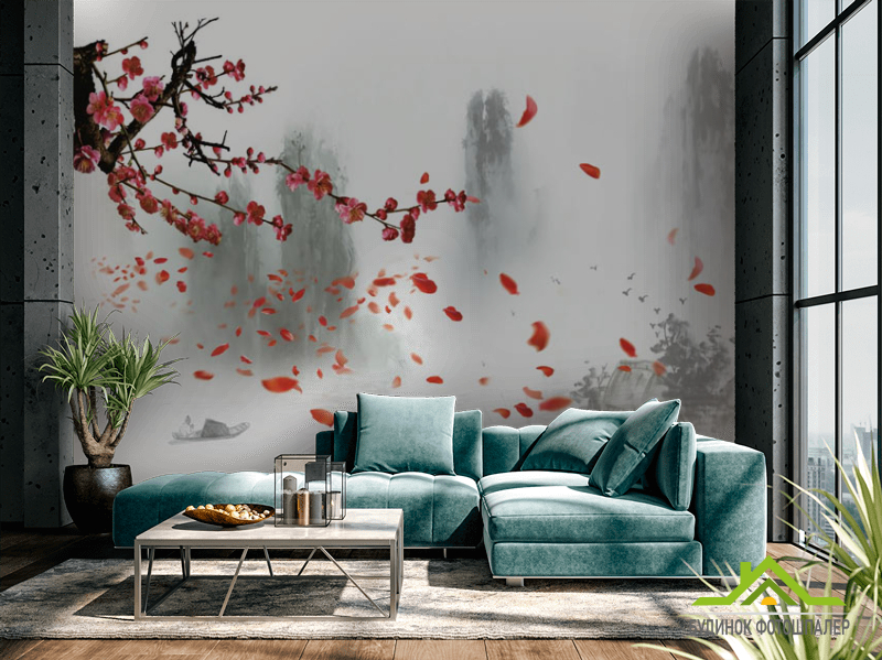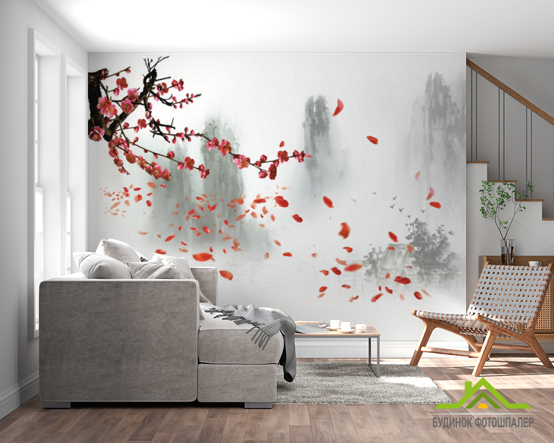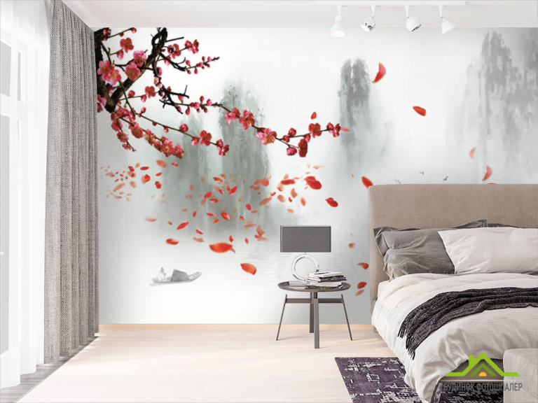 Фотообои Красная ветка сакуры Фотообои Красная ветка сакуры